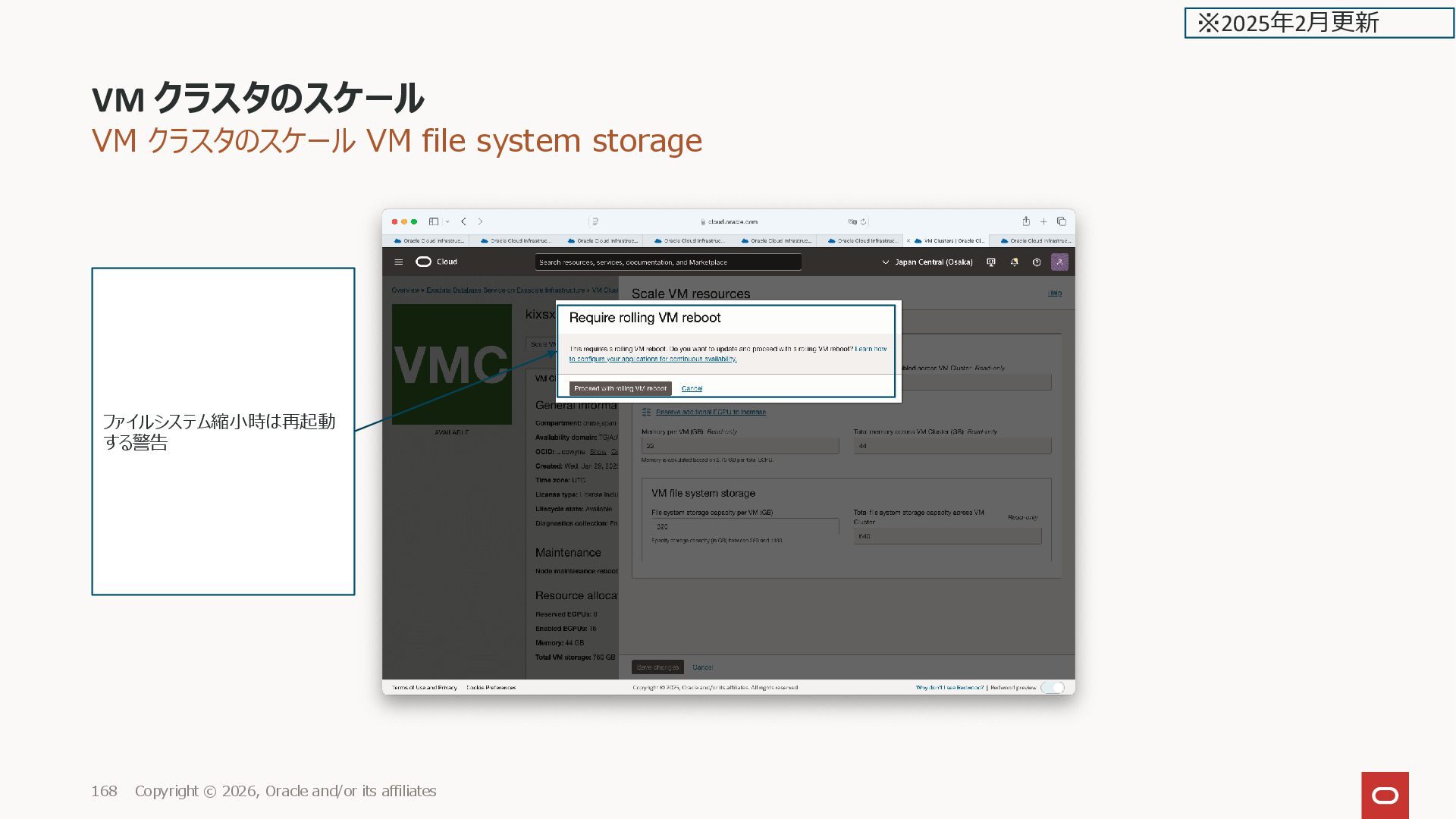 2026, Oracle and/or its affiliates 168 ファイルシステム縮小時は再起動 する警告 ※2025年2月更新