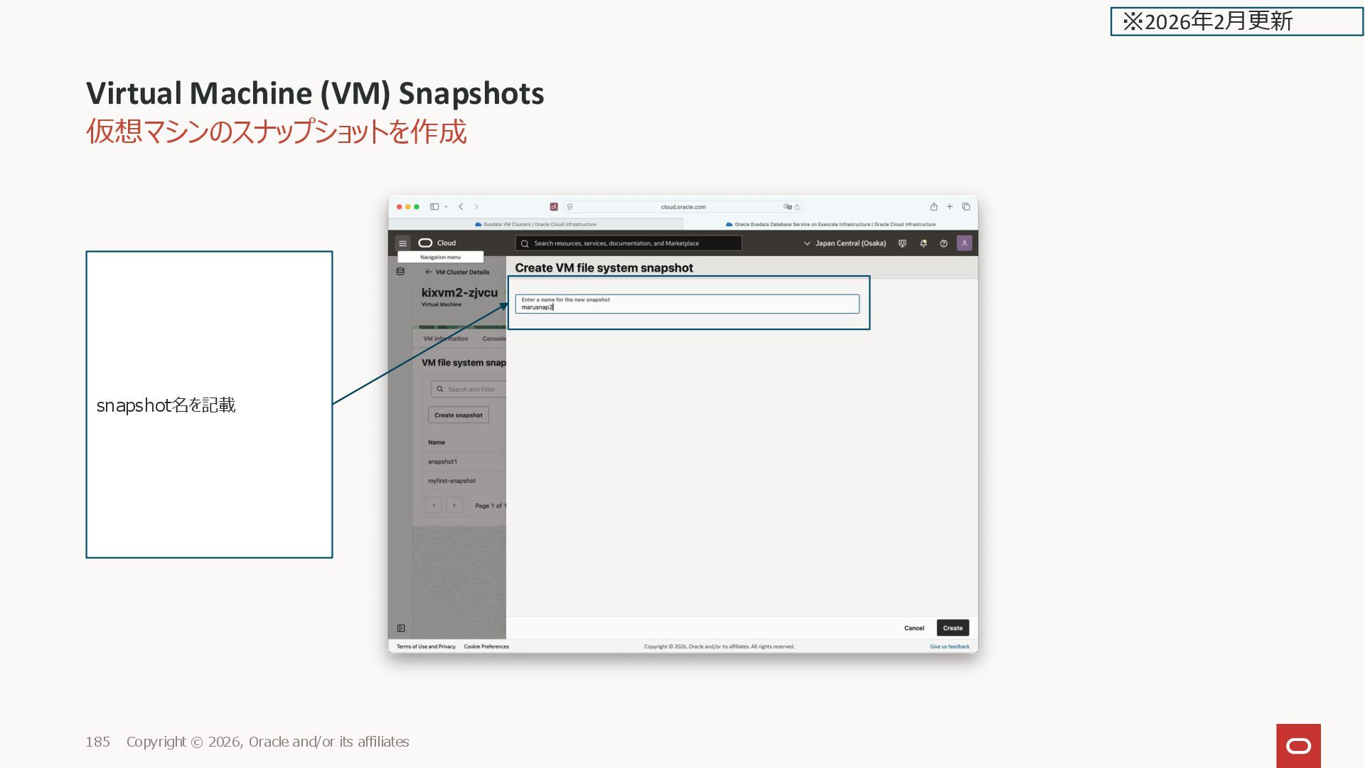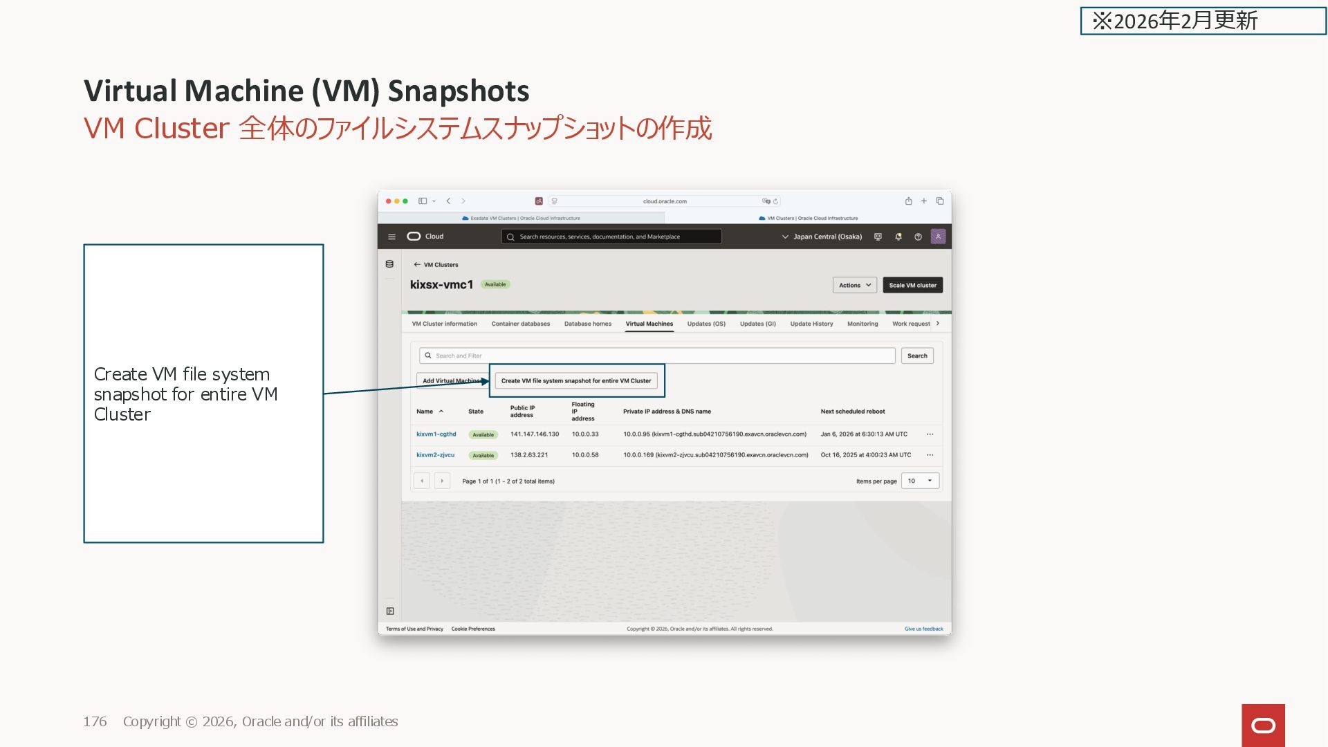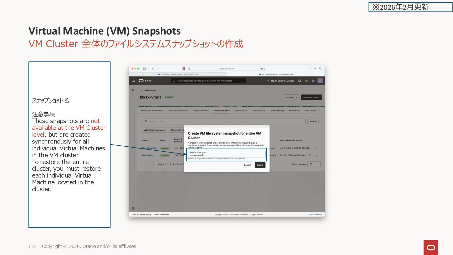Oracle and/or its affiliates 176 Create VM file system snapshot for entire VM Cluster ※2026年2月更新