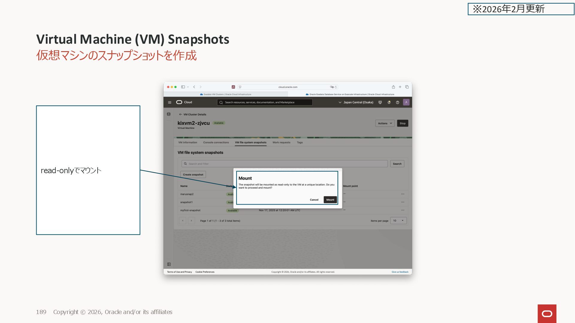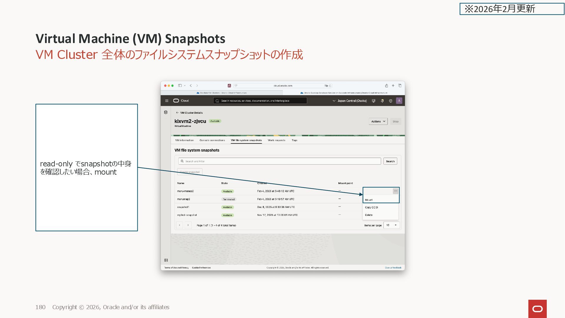 Oracle and/or its affiliates 180 read-only でsnapshotの中身 を確認したい場合、mount ※2026年2月更新