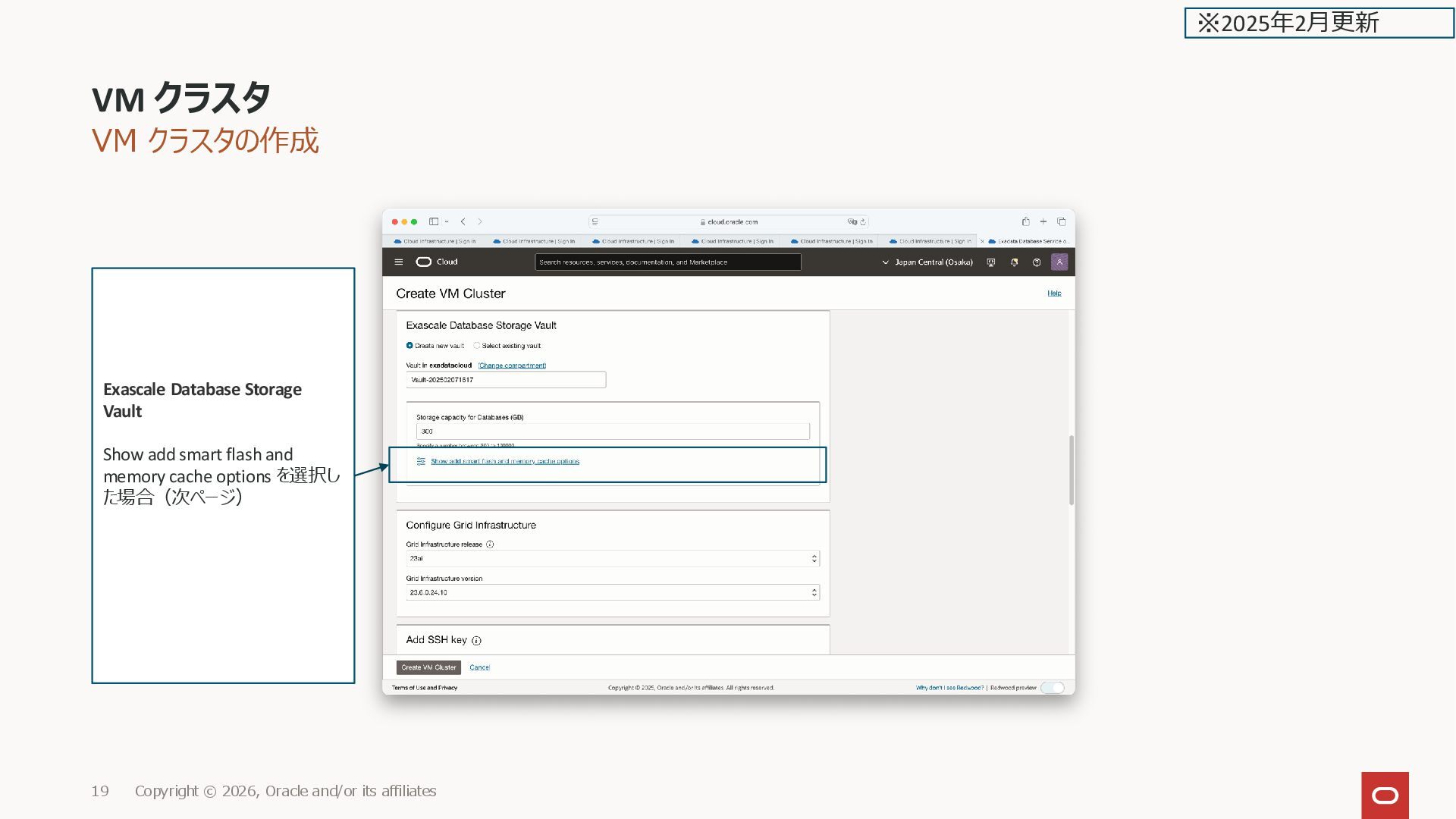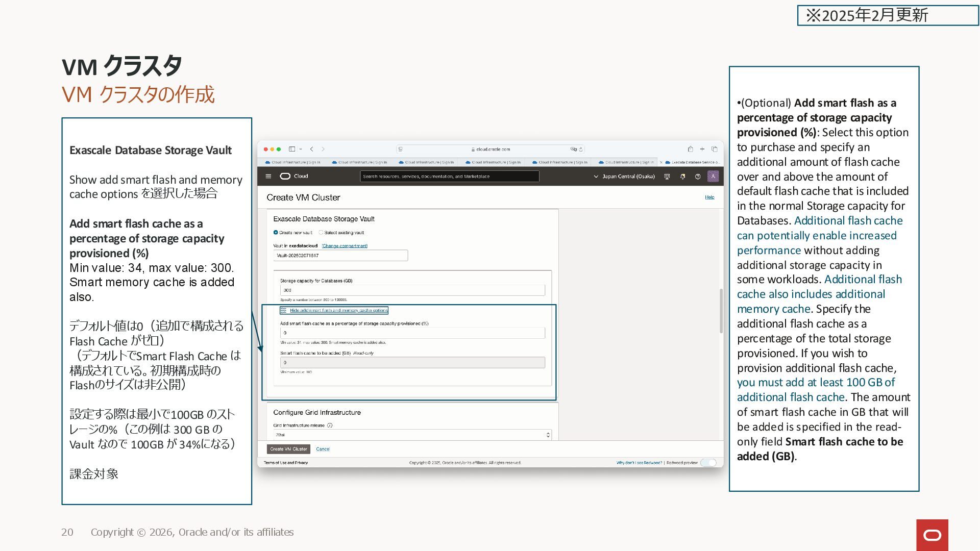 affiliates 19 ※2025年2月更新 Exascale Database Storage Vault Show add smart flash and memory cache options を選択し た場合(次ページ)