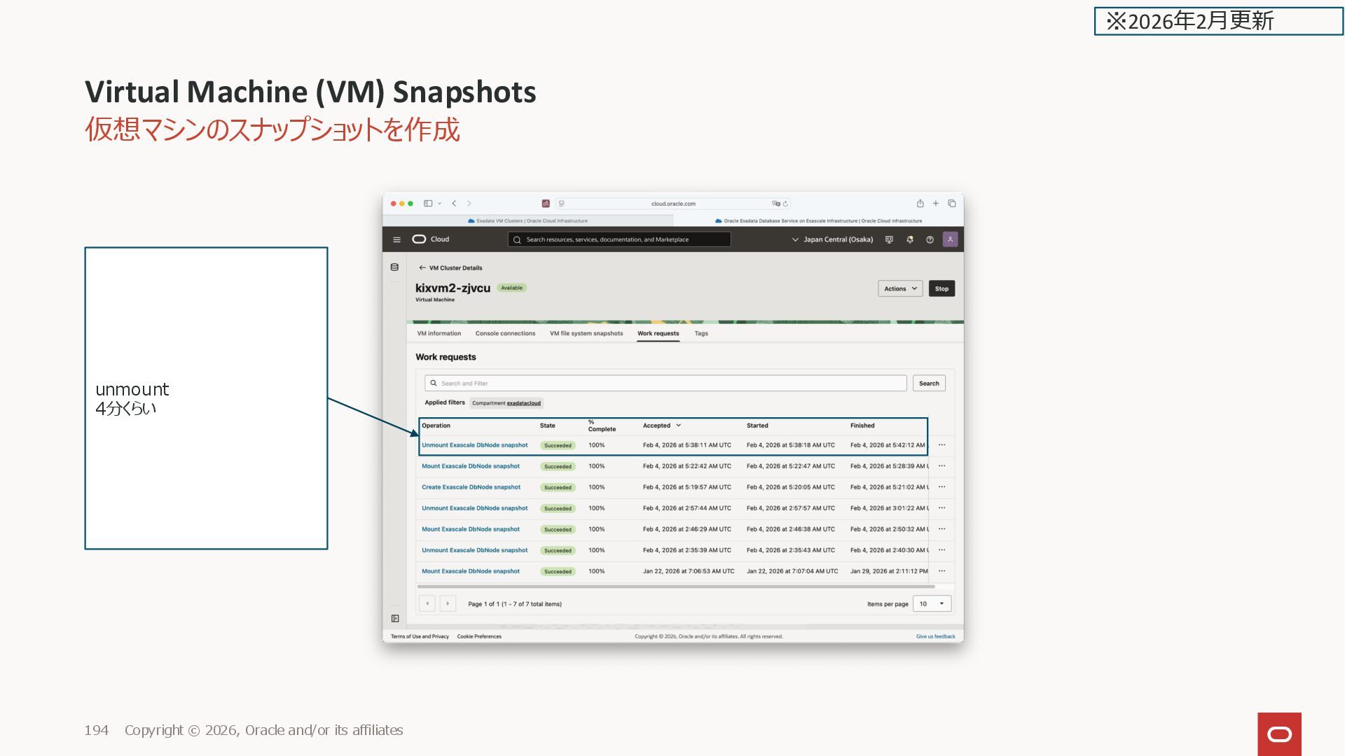 Oracle and/or its affiliates 183 unmount はメニューから unmount ※2026年2月更新