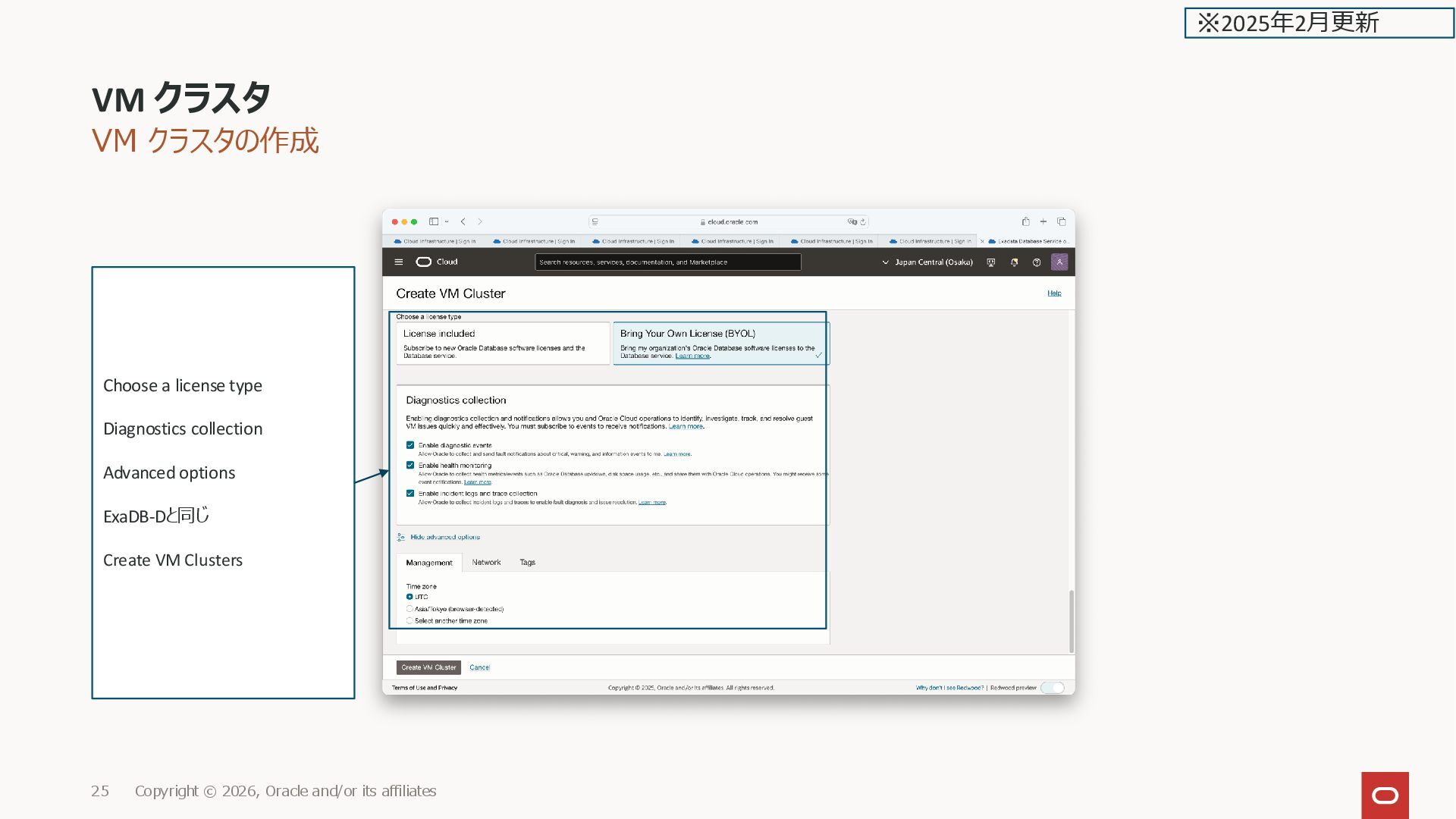 affiliates 25 ※2025年2月更新 Choose a license type Diagnostics collection Advanced options ExaDB-Dと同じ Create VM Clusters