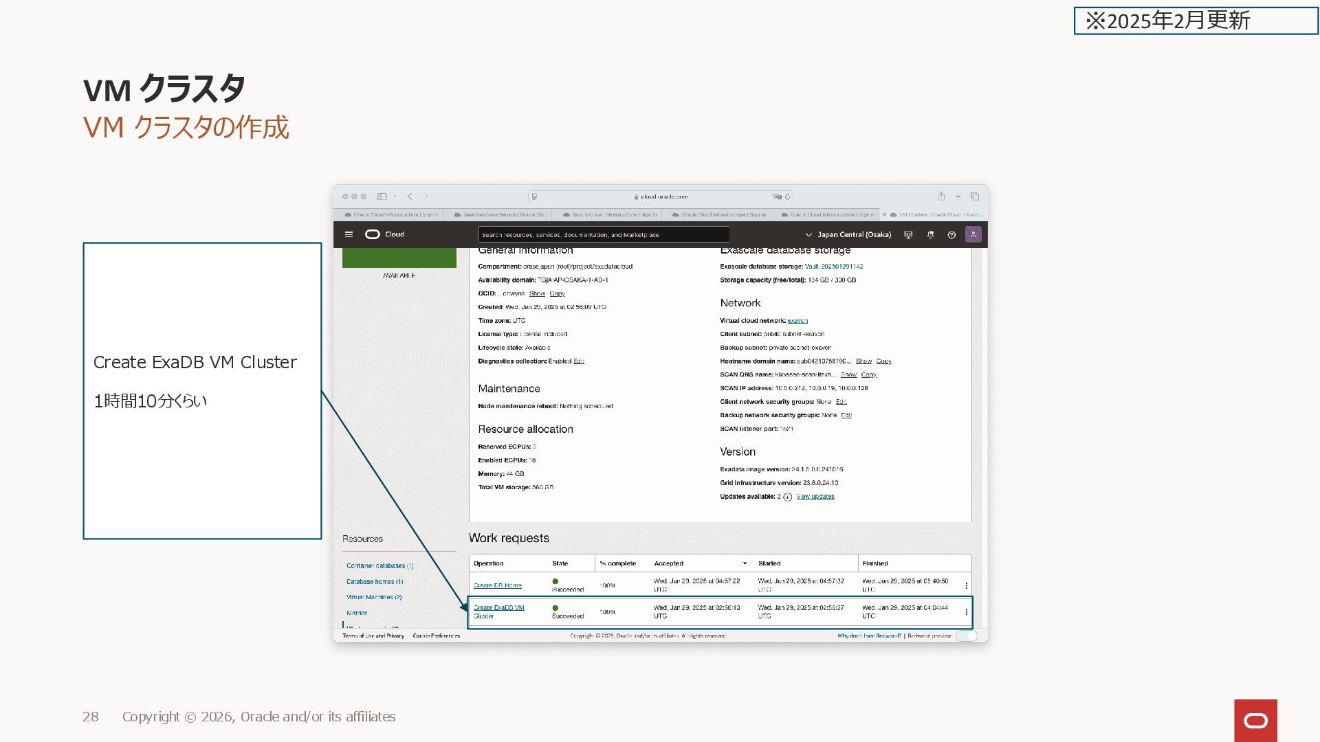 affiliates 28 Create ExaDB VM Cluster 1時間10分くらい ※2025年2月更新