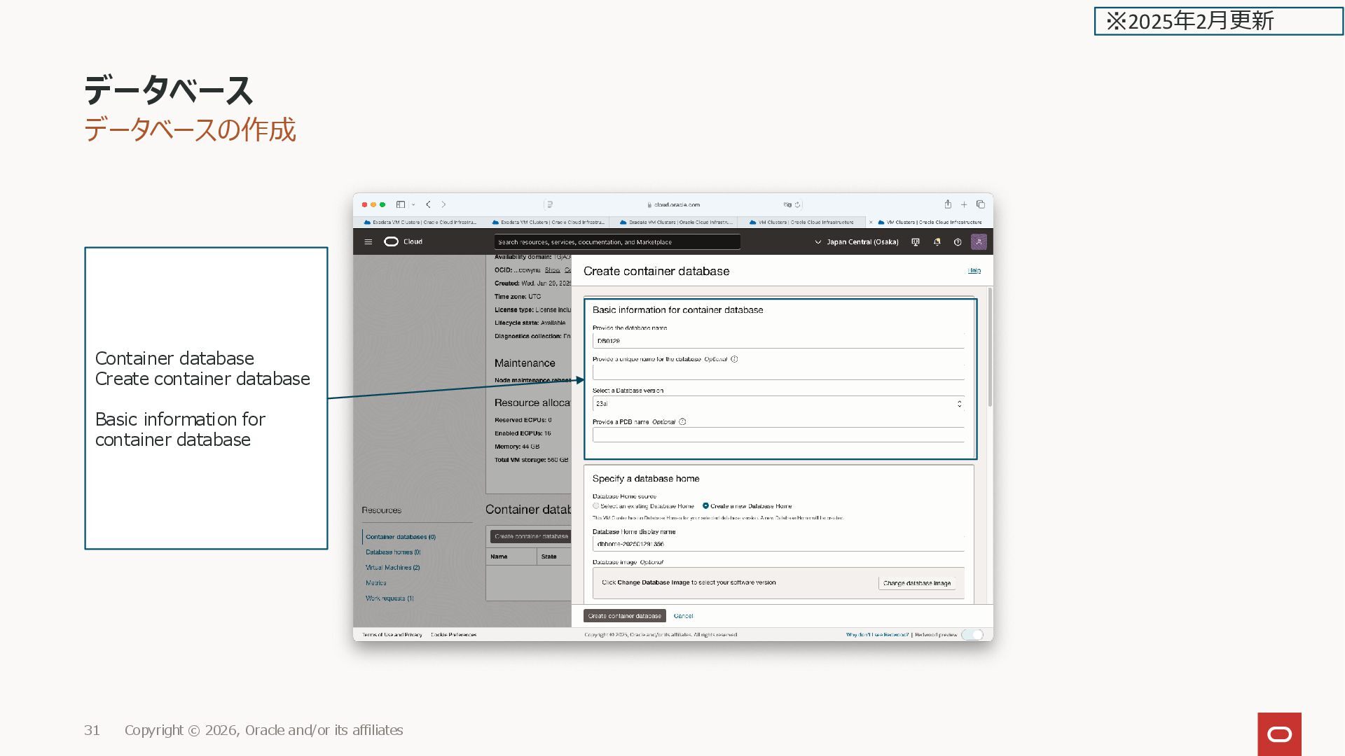 Container database Create container database Basic information for container database ※2025年2月更新