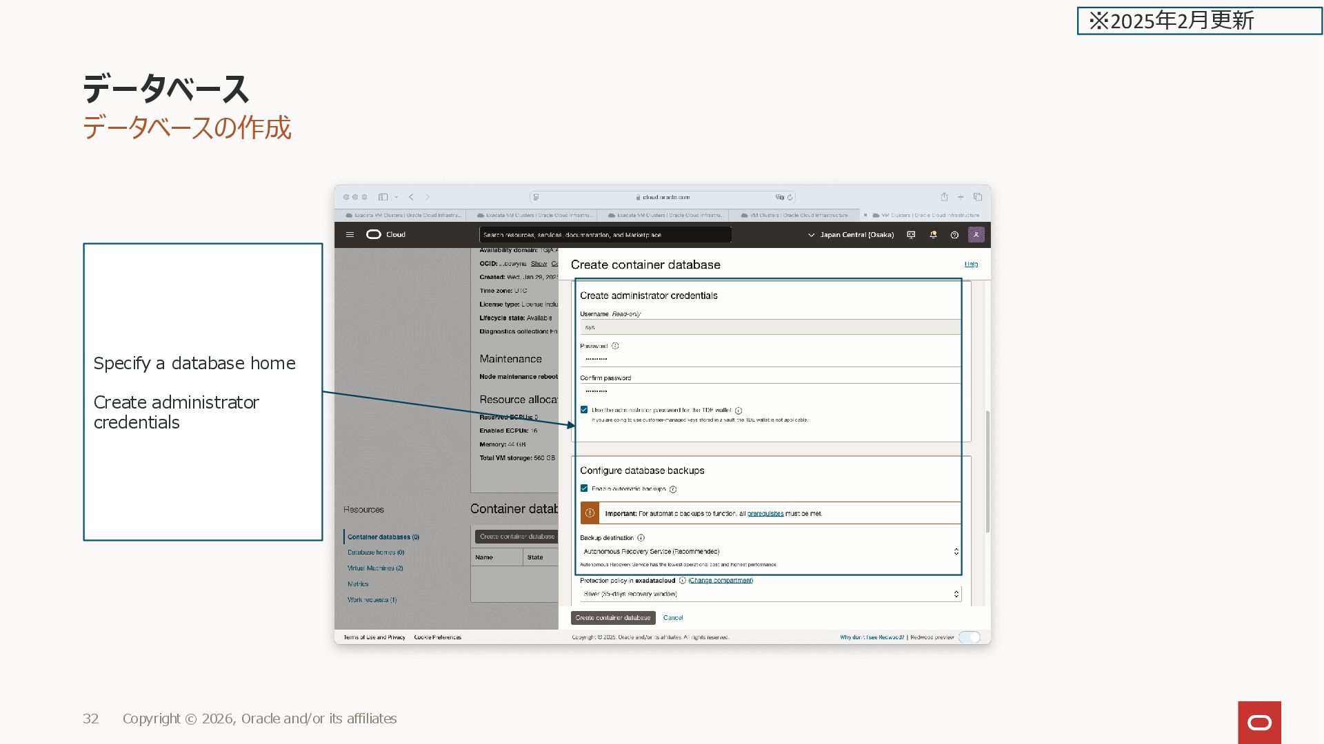 ※2025年2月更新 Specify a database home Create administrator credentials