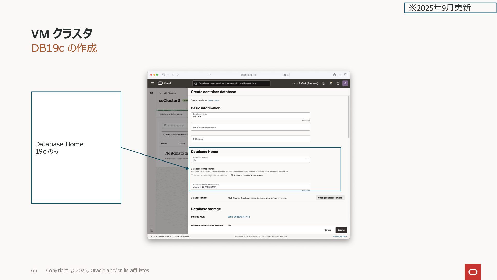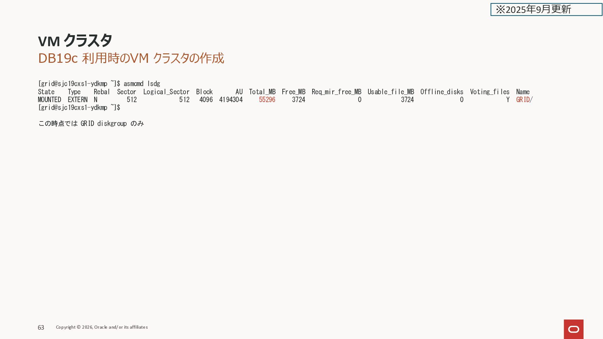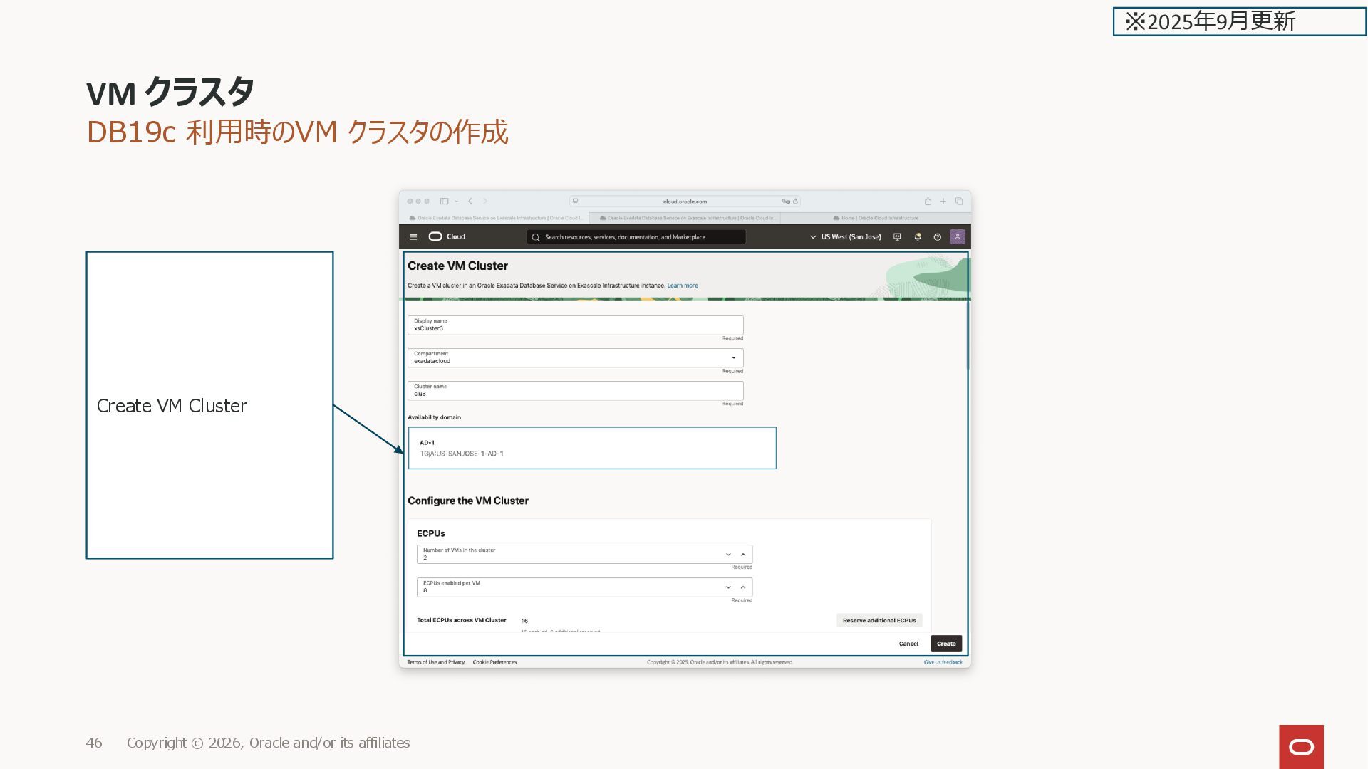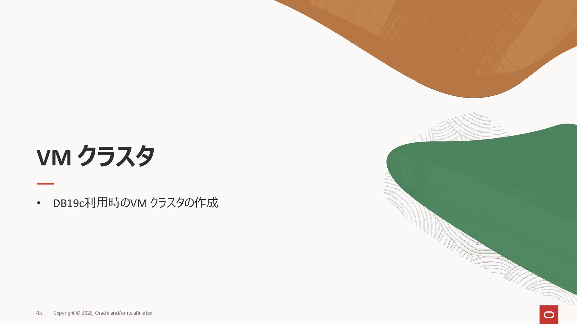 44. DB19c 利用時のVM クラスタの作成 VM クラスタ Copyright © 2026, Oracle and/or