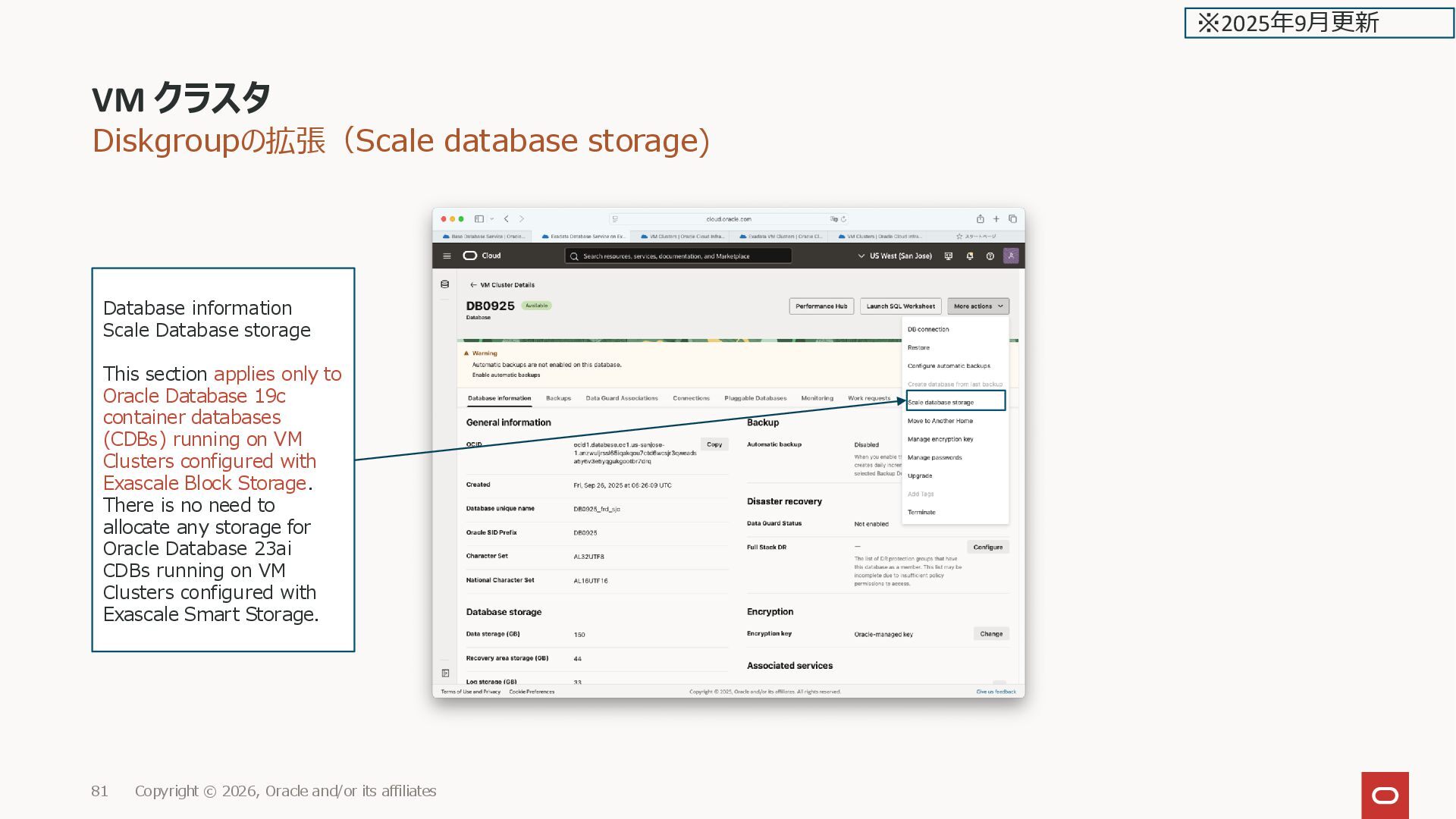 its affiliates 48 Create VM Cluster Storage Exascale Block storage VM File system storage Database storage は通常の Exascale smart storage と同じ ※2025年9月更新