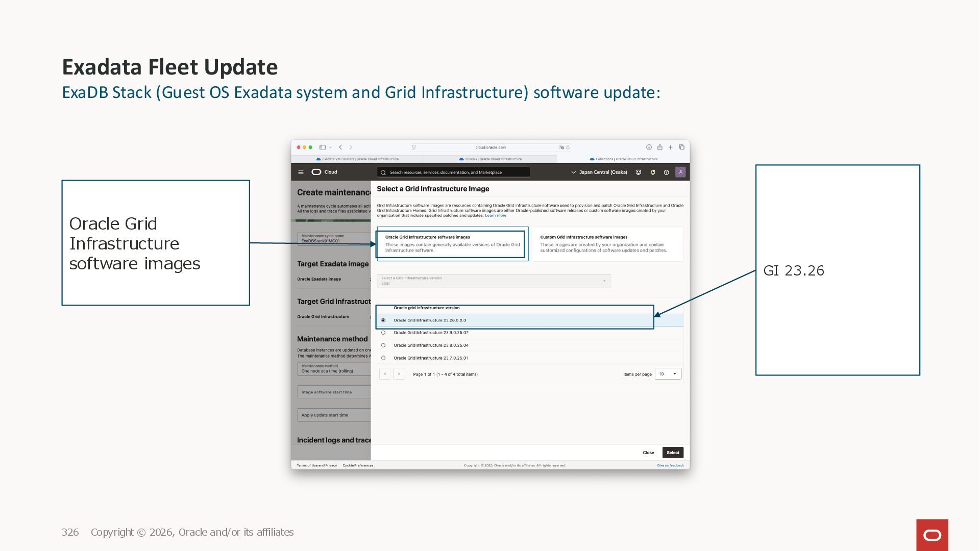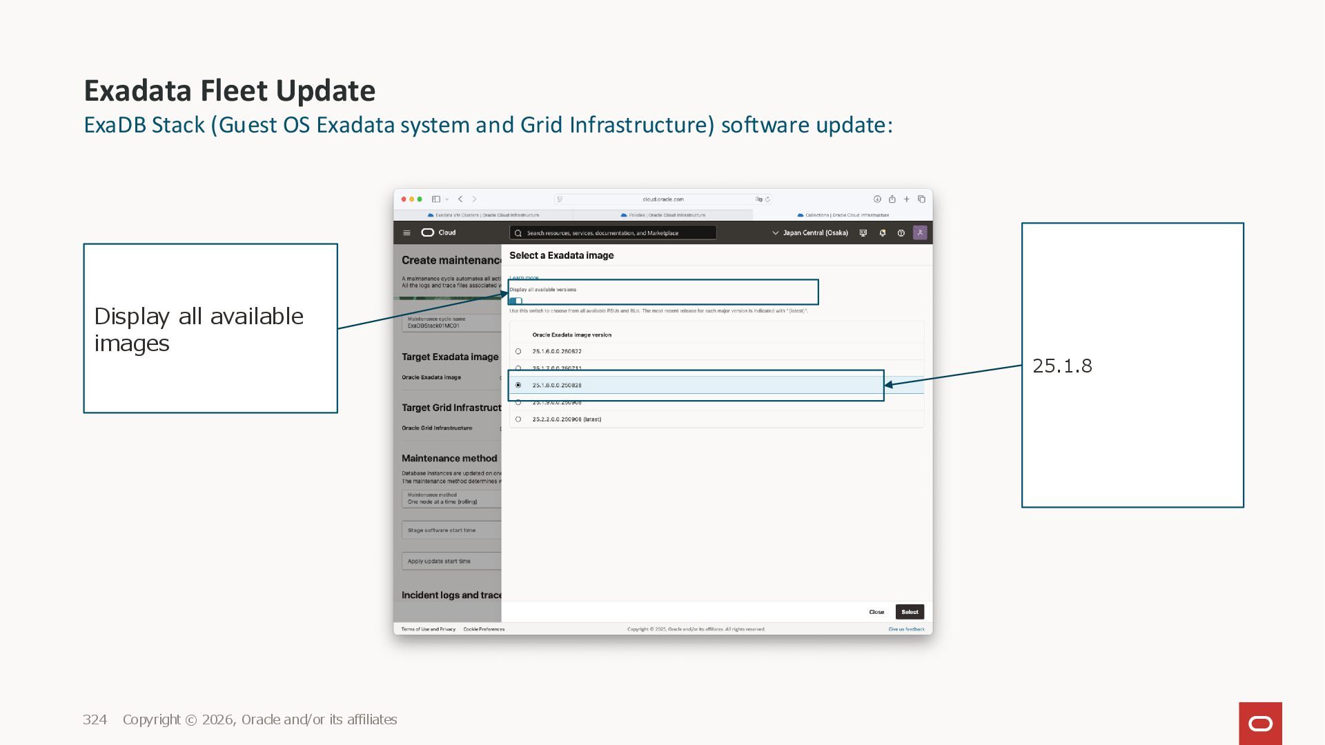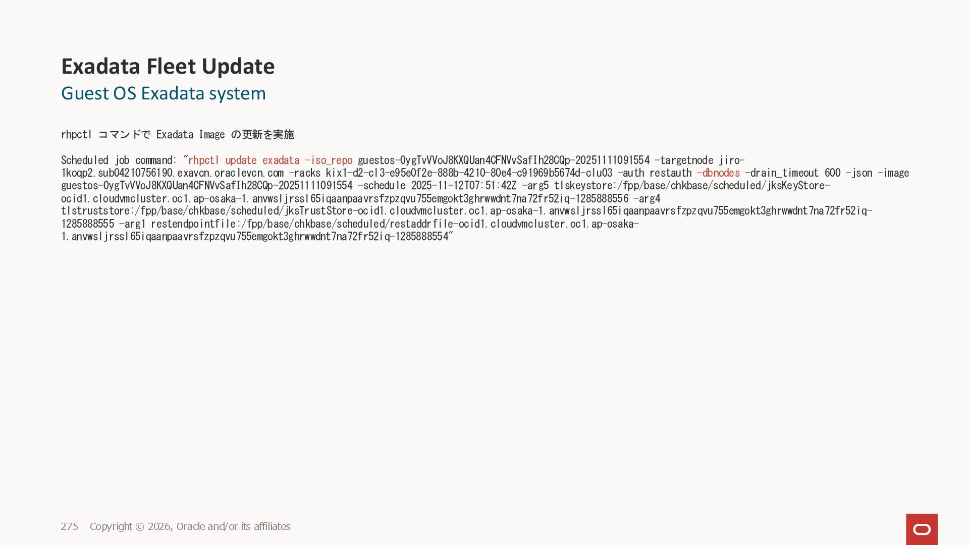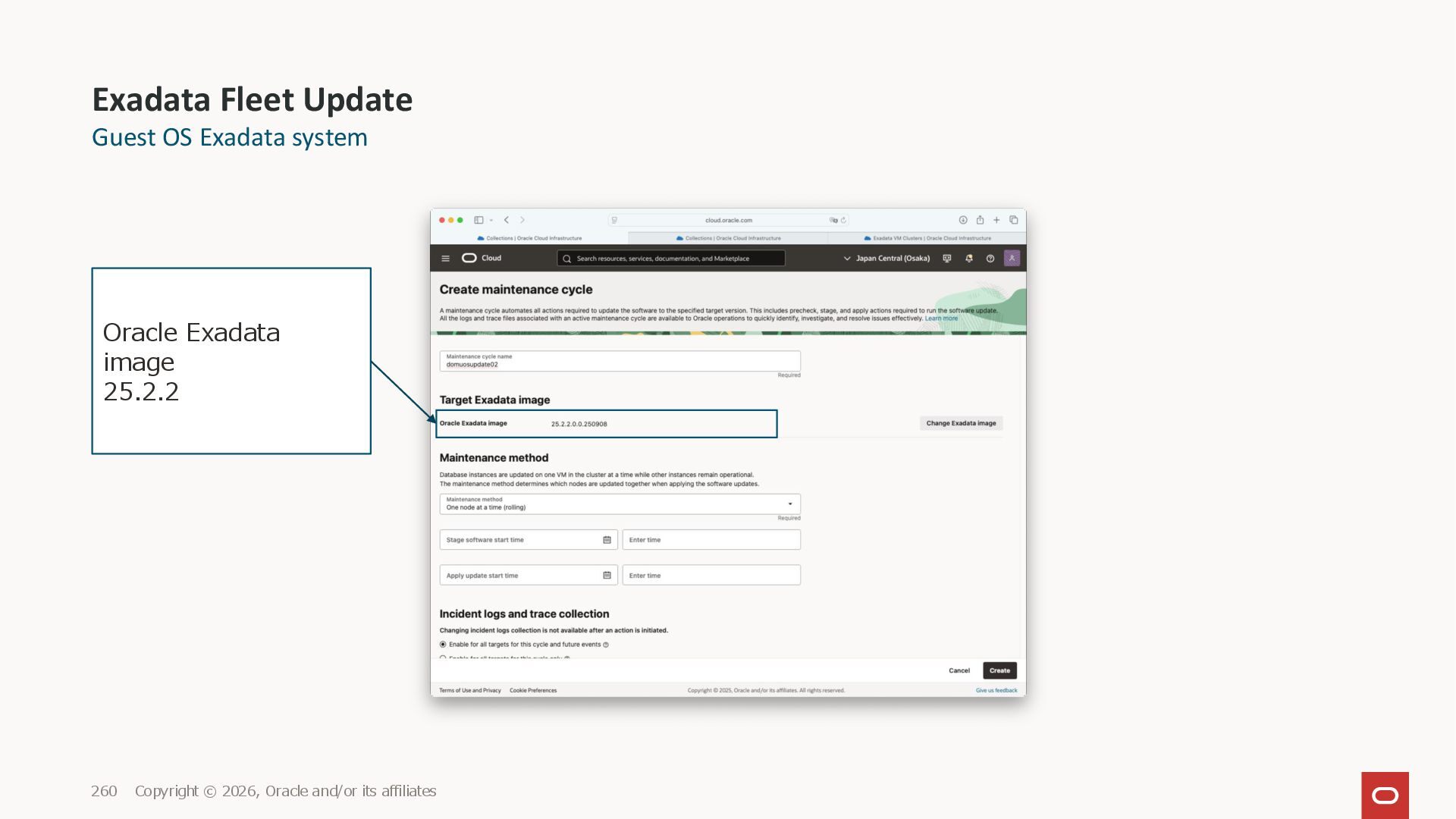 Exadata Fleet Updateは、Exadata Cloud@Customer (ExaDB-C@C)およびExadata Database Service on Dedicated Infrastructure (ExaDB-D)を含むOracleのExadata Database Serviceでは無償で使用できます。