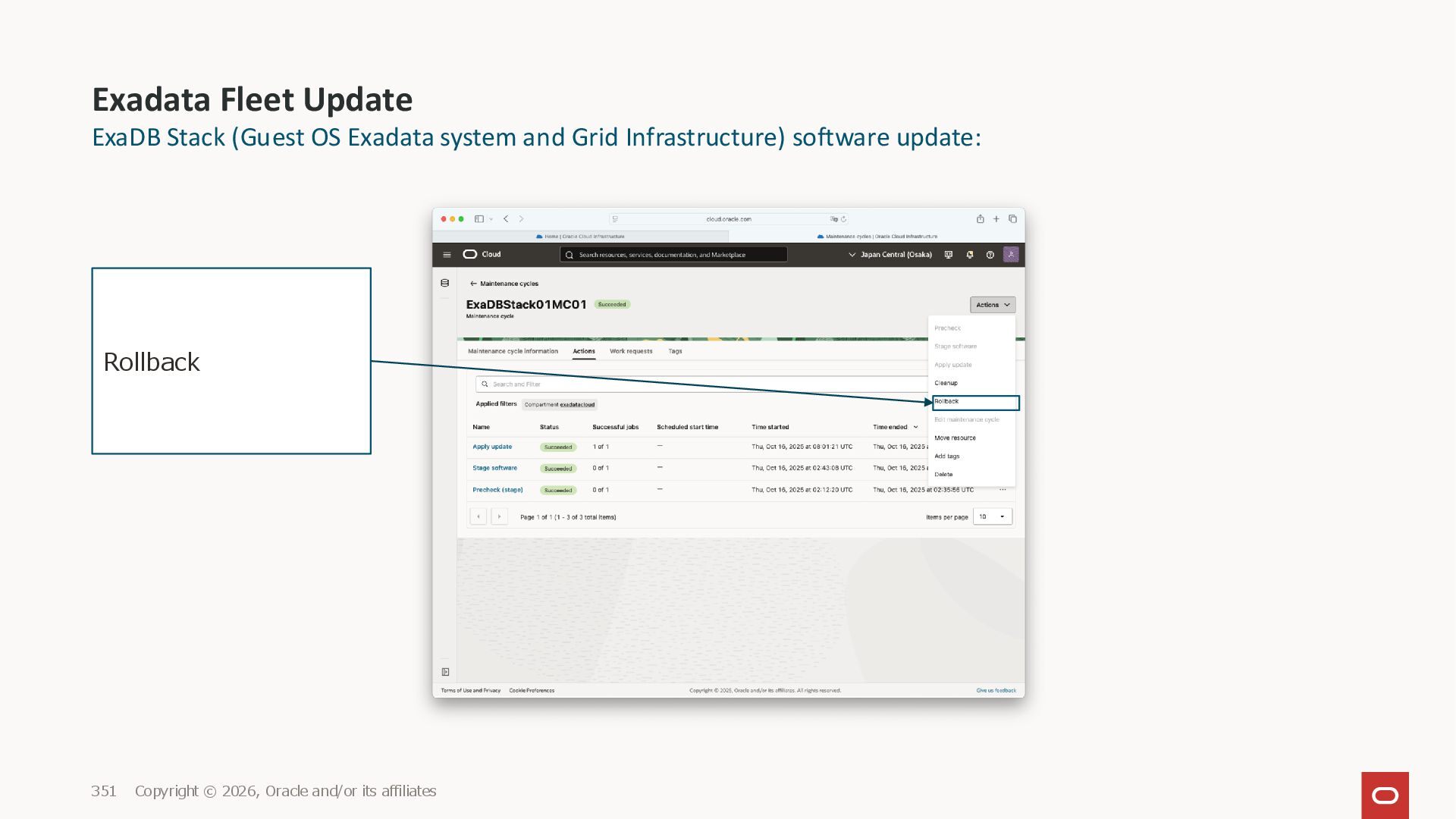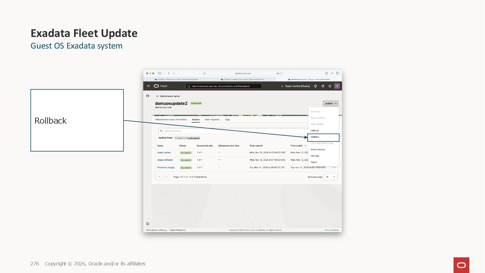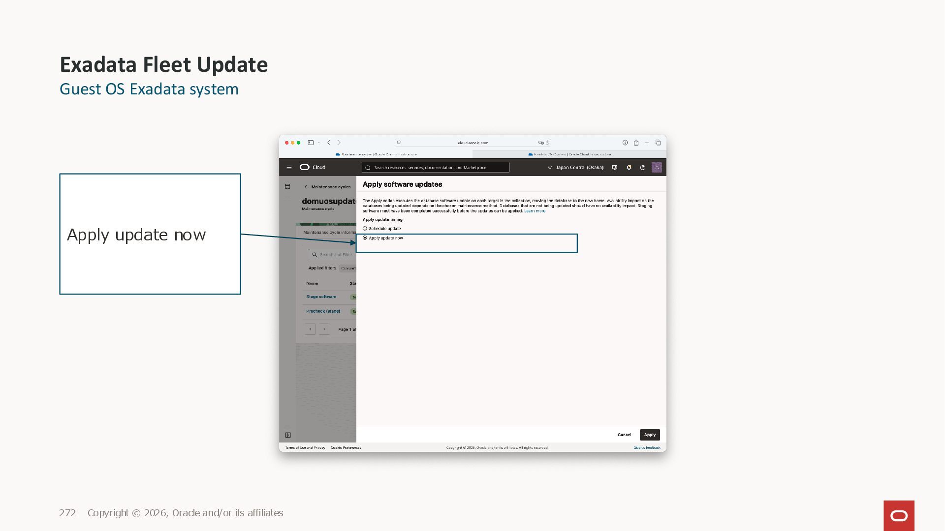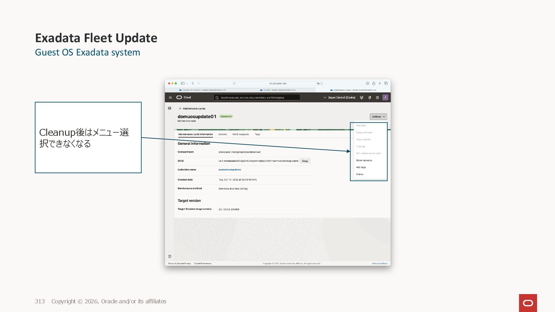 Exadata Fleet Updateは、Exadata Cloud@Customer (ExaDB-C@C)およびExadata Database Service on Dedicated Infrastructure (ExaDB-D)を含むOracleのExadata Database Serviceでは無償で使用できます。