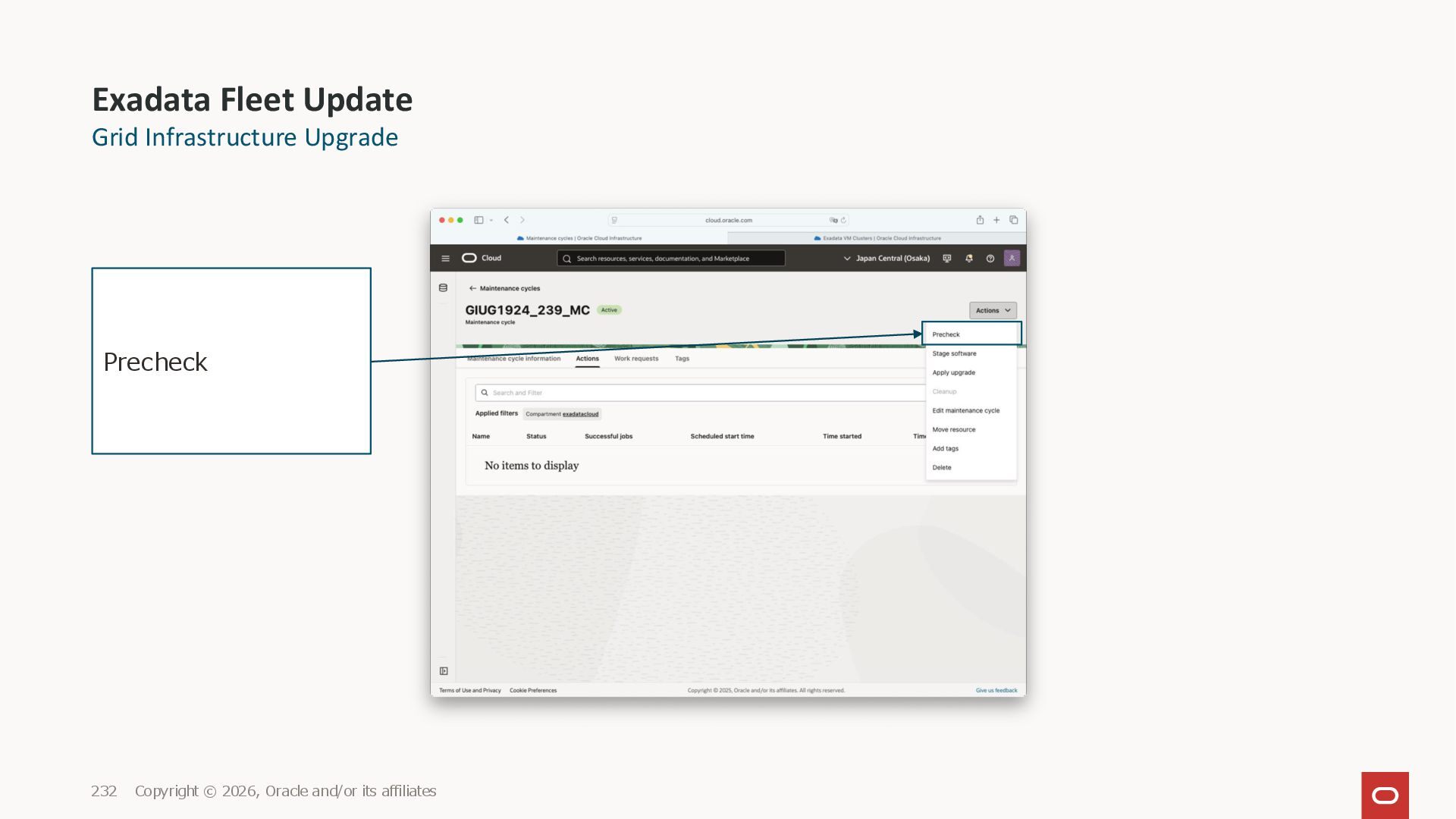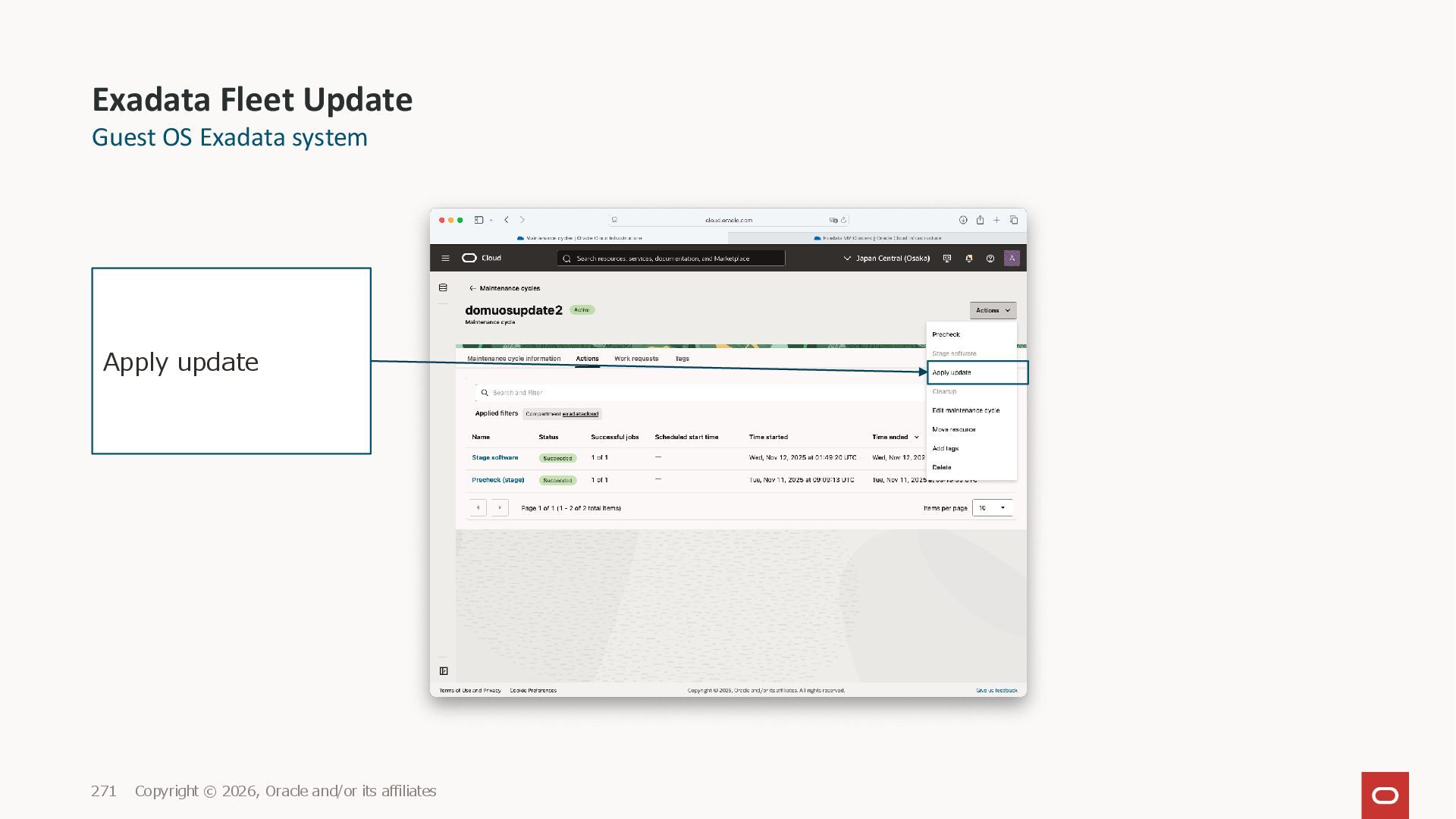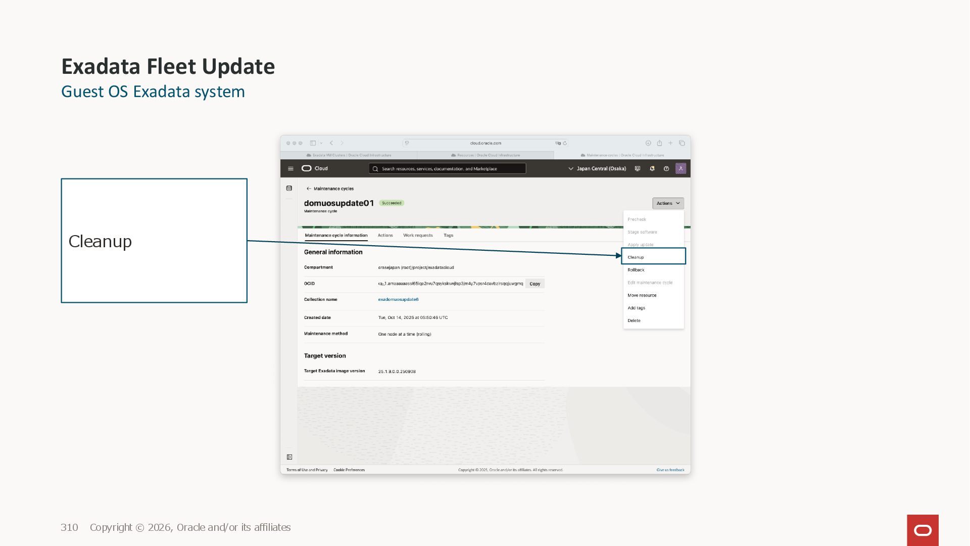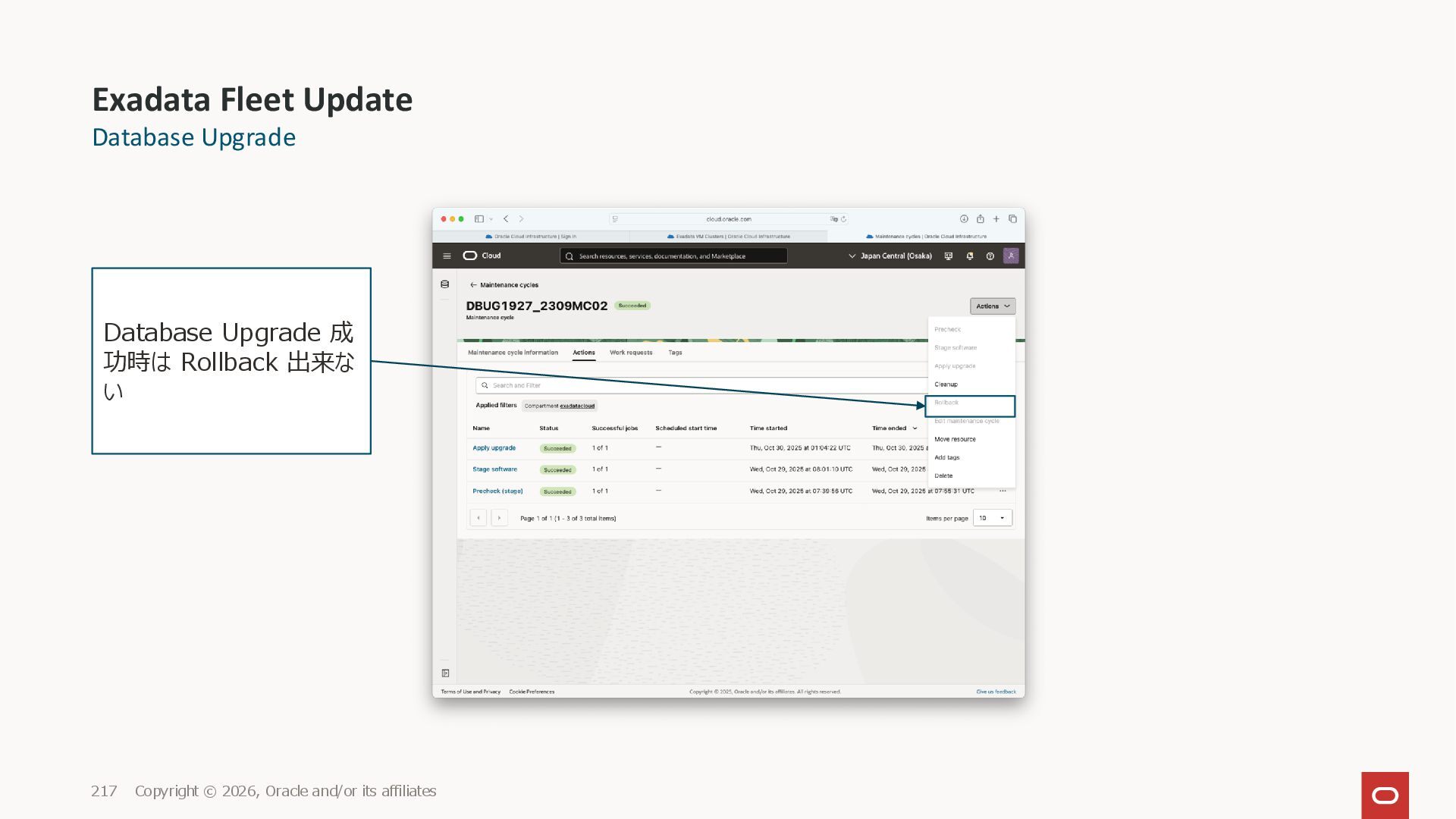 Exadata Fleet Updateは、Exadata Cloud@Customer (ExaDB-C@C)およびExadata Database Service on Dedicated Infrastructure (ExaDB-D)を含むOracleのExadata Database Serviceでは無償で使用できます。