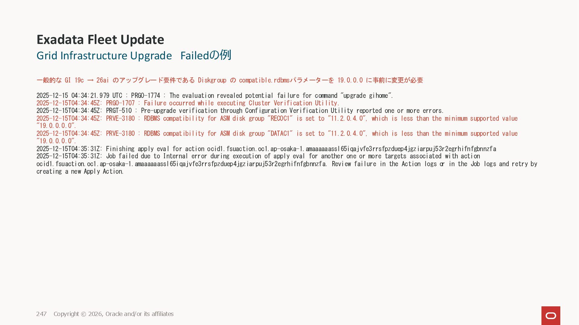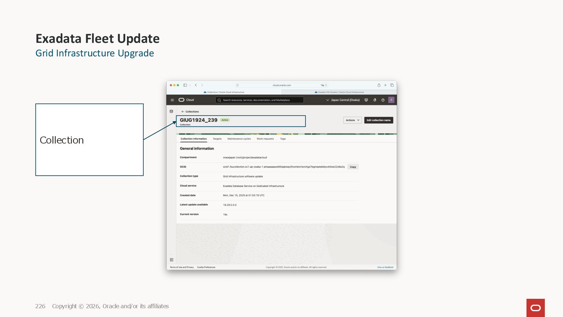 Oracle DatabaseおよびOracle Grid Infrastructureターゲットのコレクションの26aiへのアップグレード