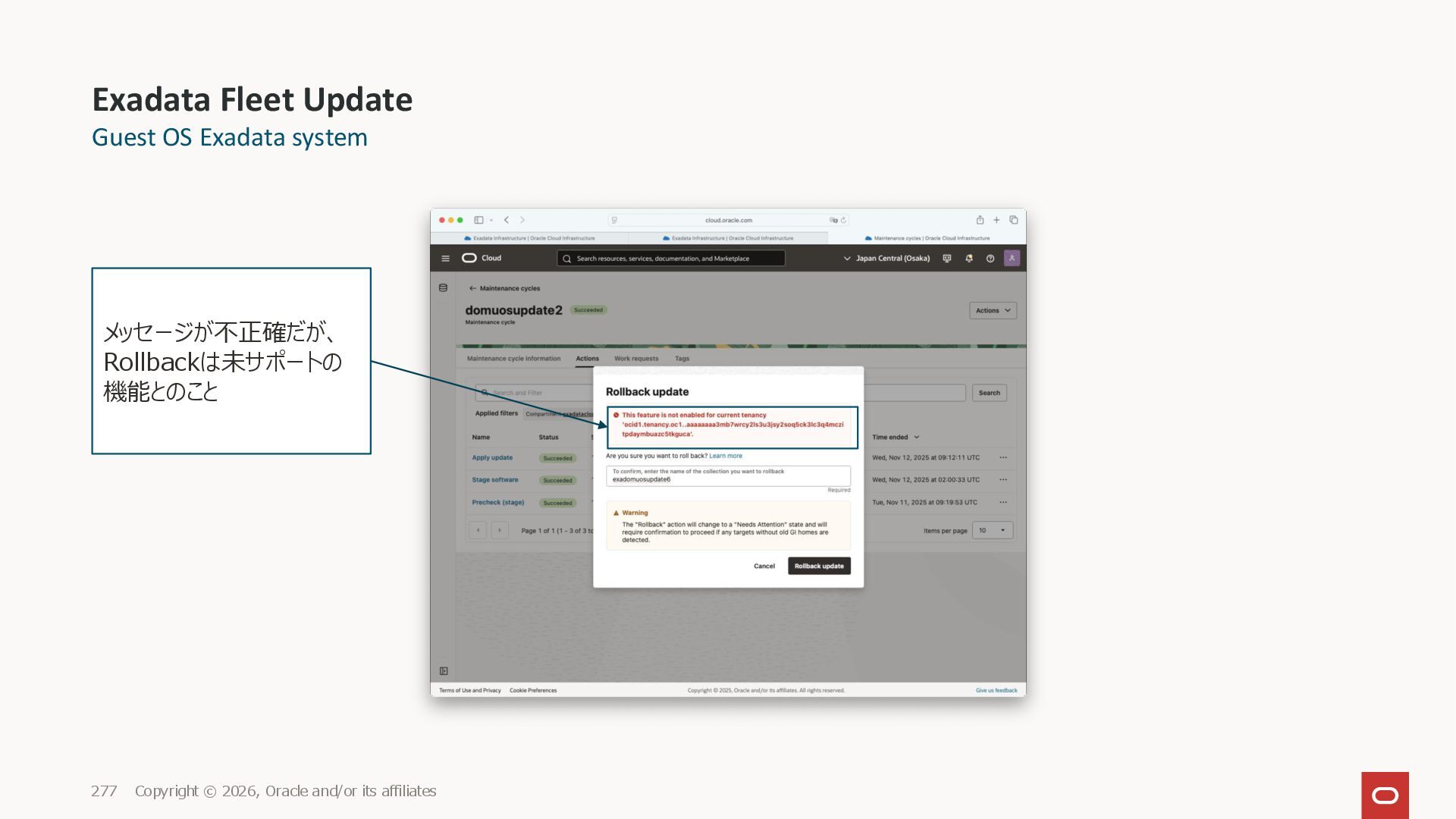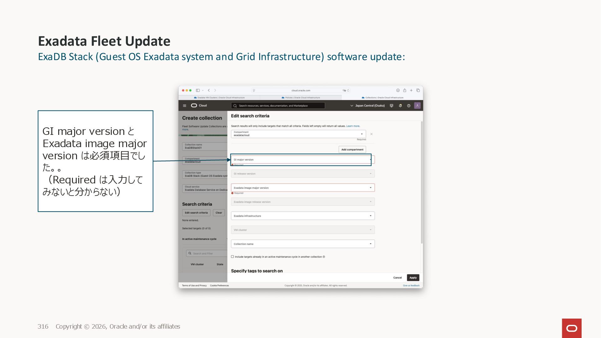 ExadataインフラストラクチャのExaDBスタック更新の拡張