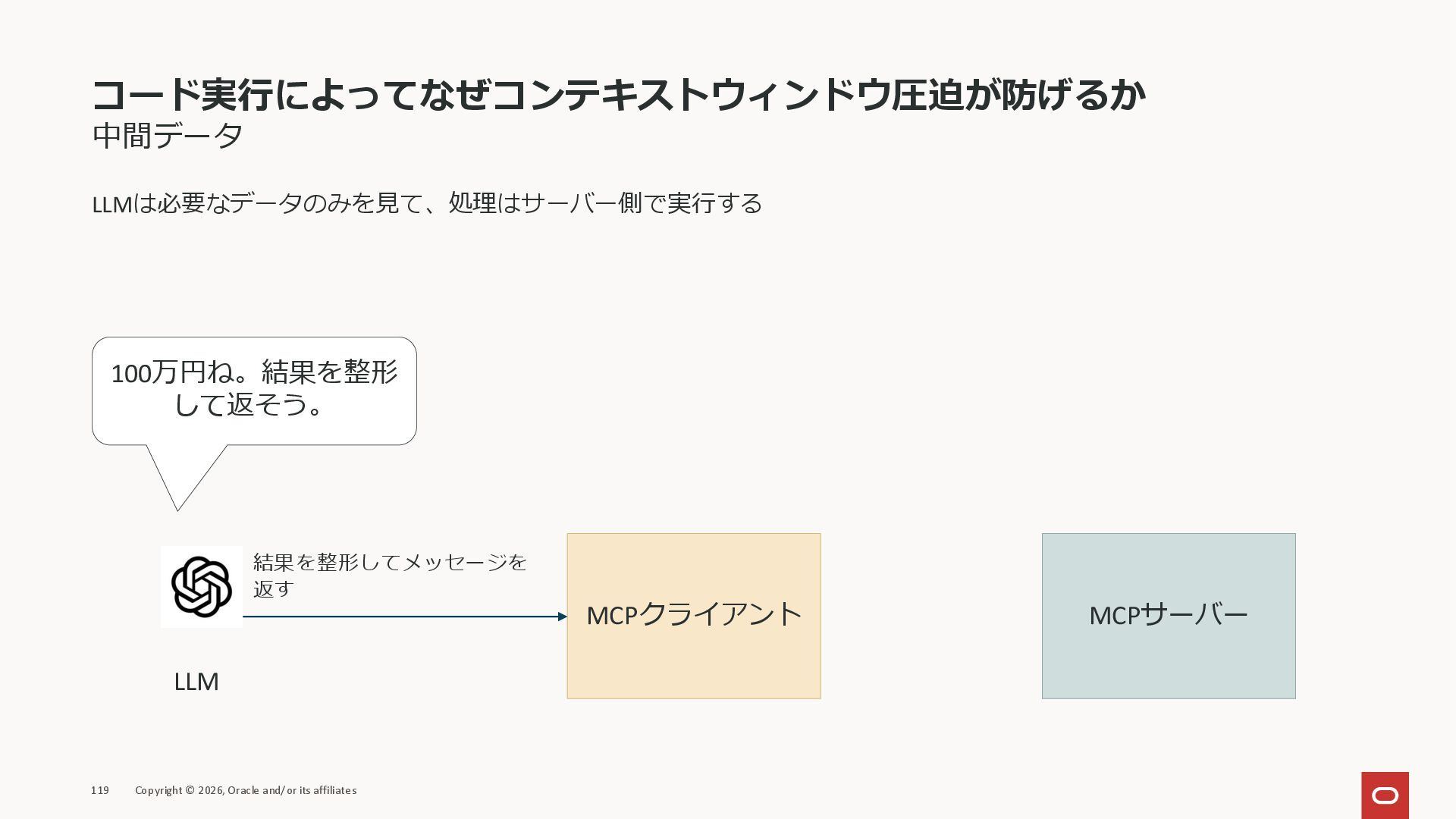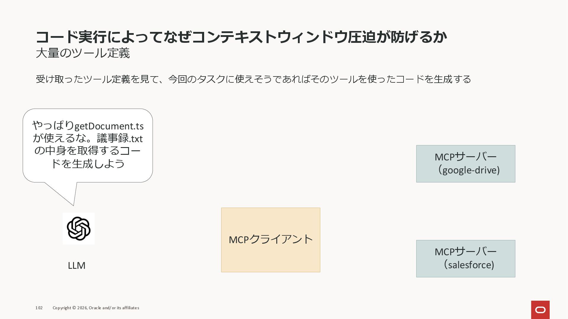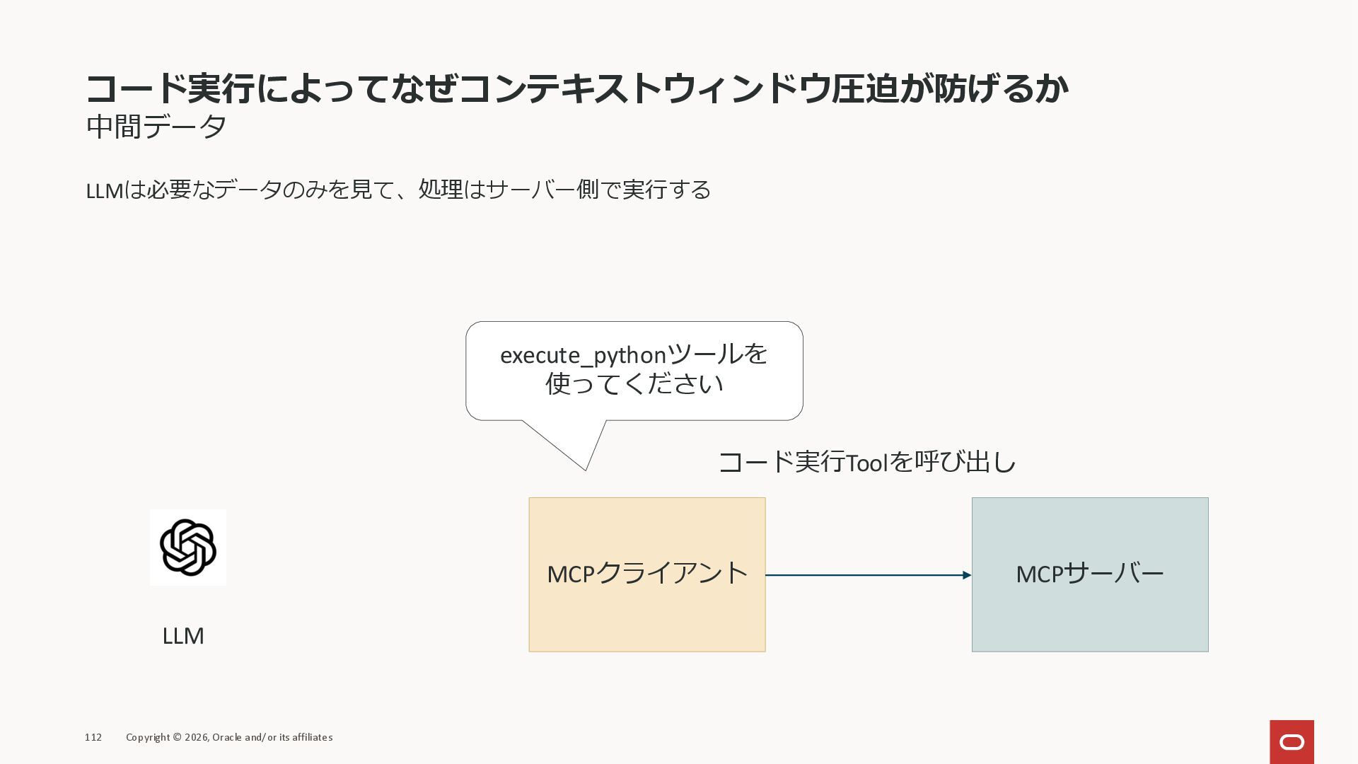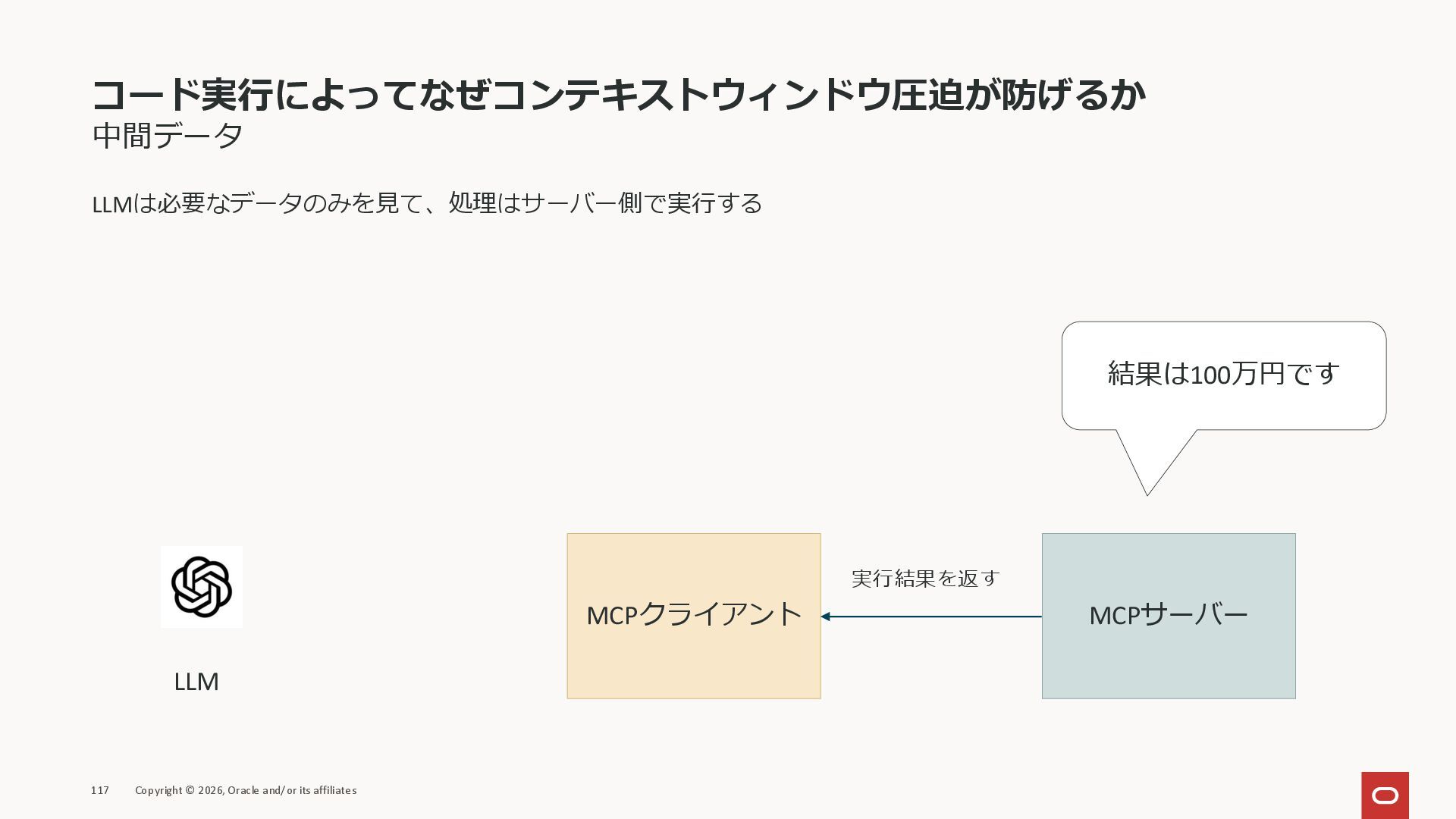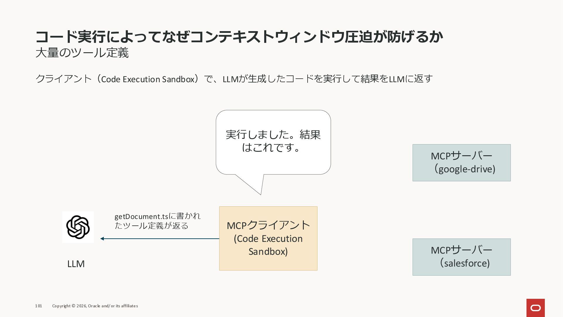 affiliates MCPクライアント MCPサーバー JSON-RPC 2.0 MCPの仕様 (メソッドなど) JSON-RPC 2.0 MCPの仕様 (メソッドなど) *JSON-RPC 2.0では、jsonrpc, id, method, paramsなどのフィールドが定義されているが、その中に何がくるのかまでは定 義されていない MCPは、その中(例えばmethodの中)にどういう名前が入るかなどを定義している *https://www.jsonrpc.org/specification