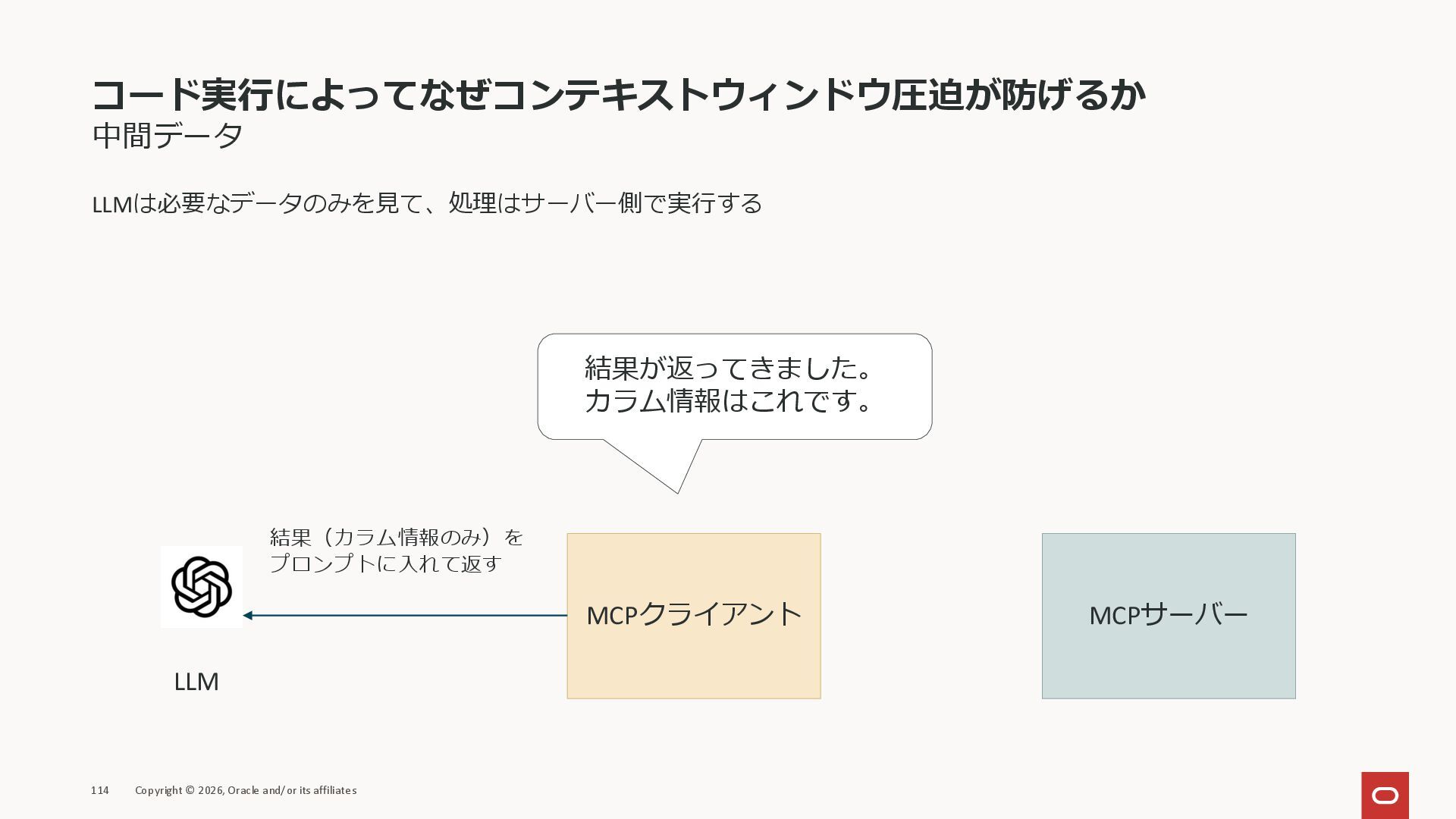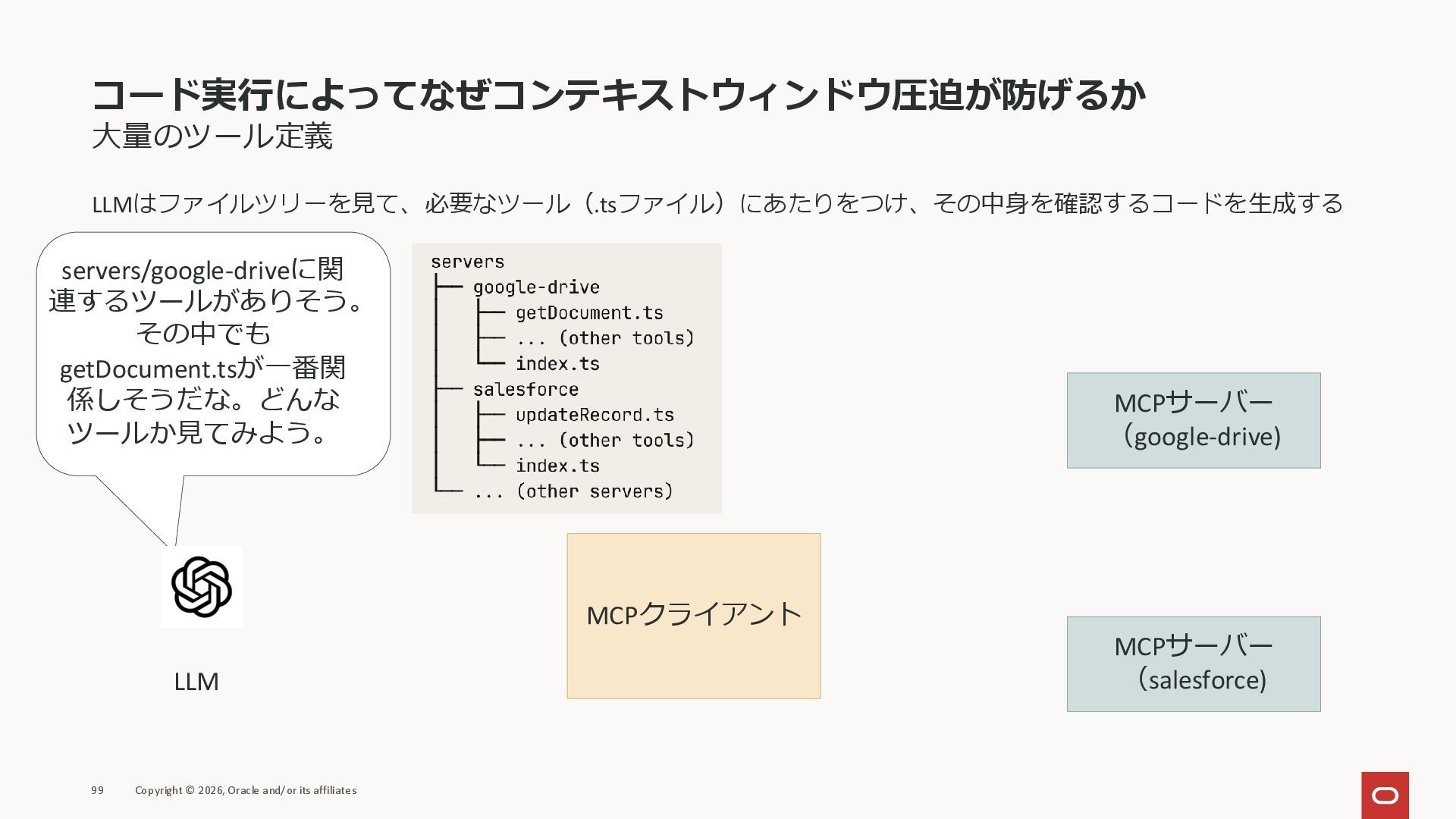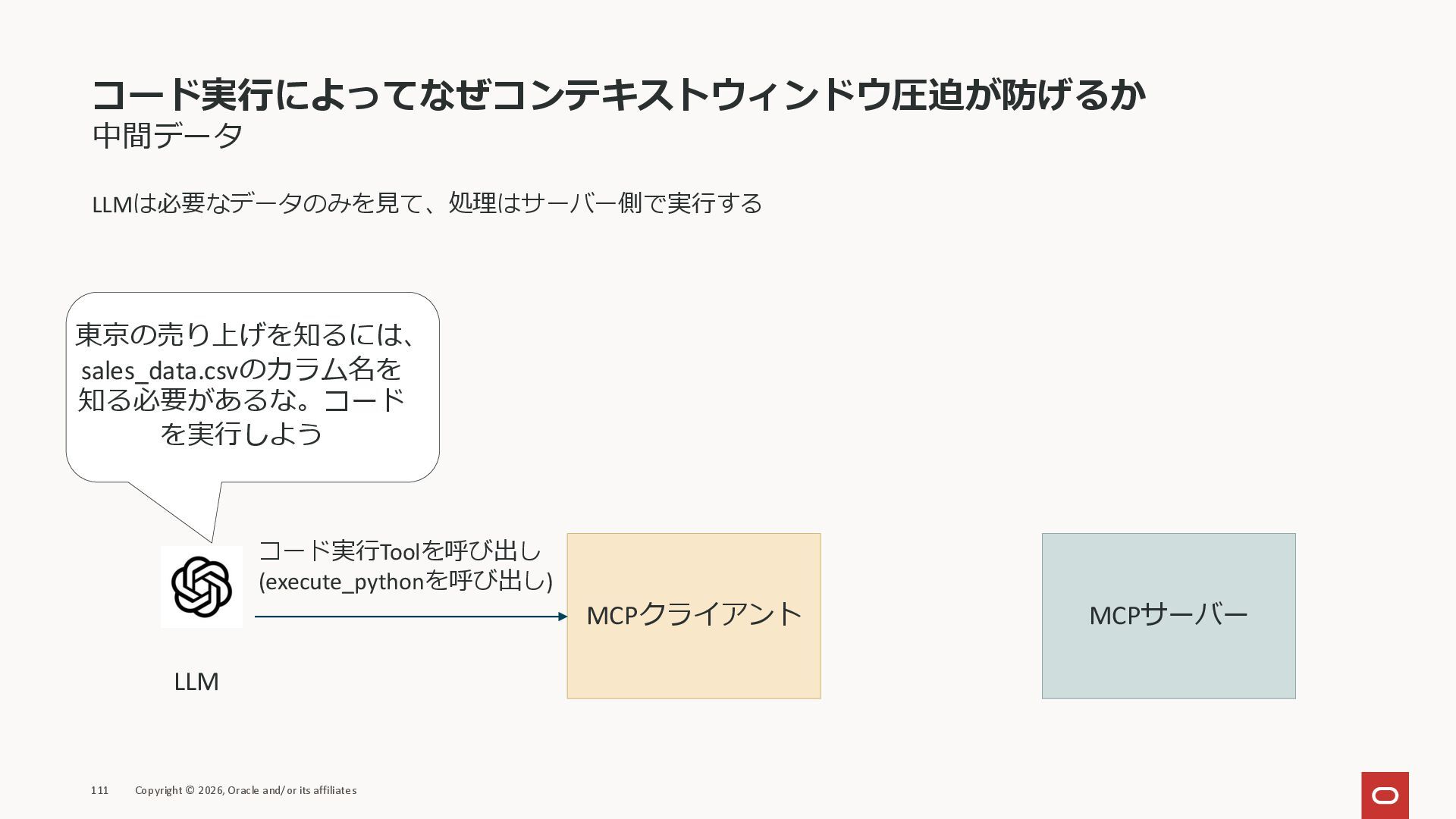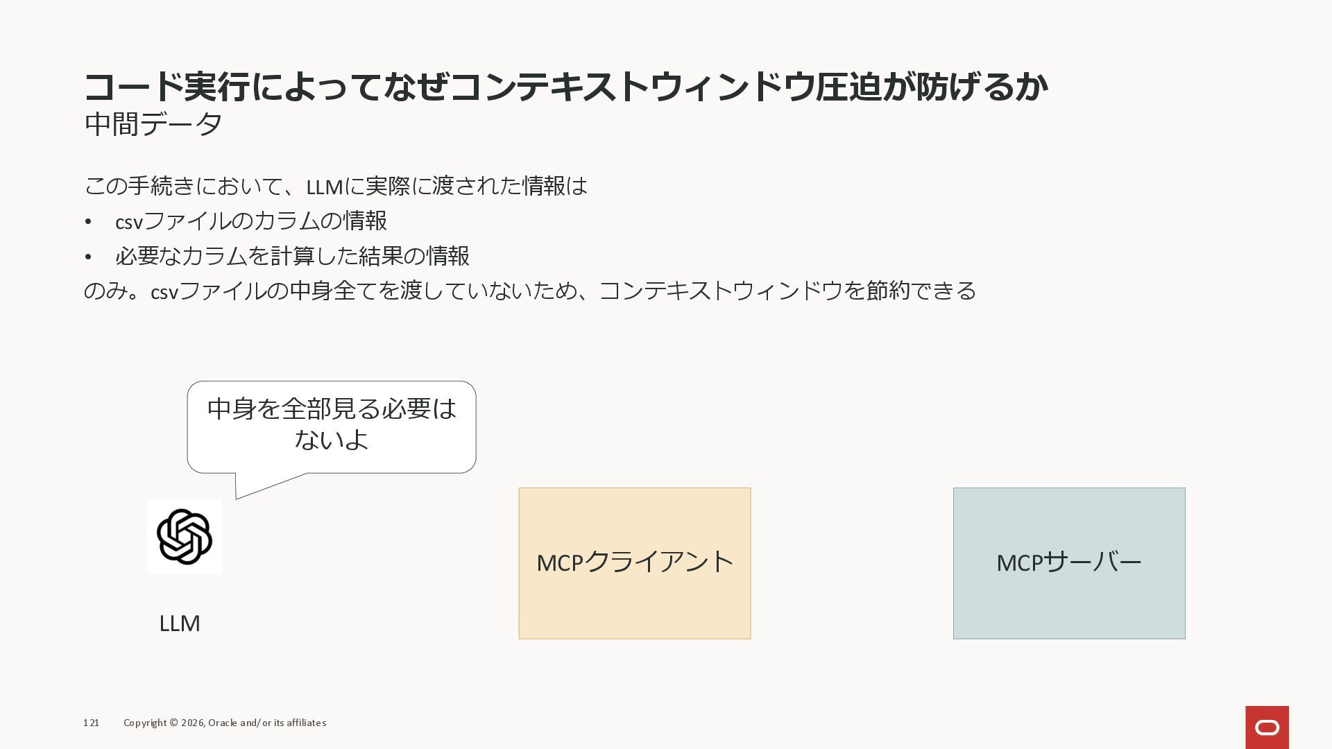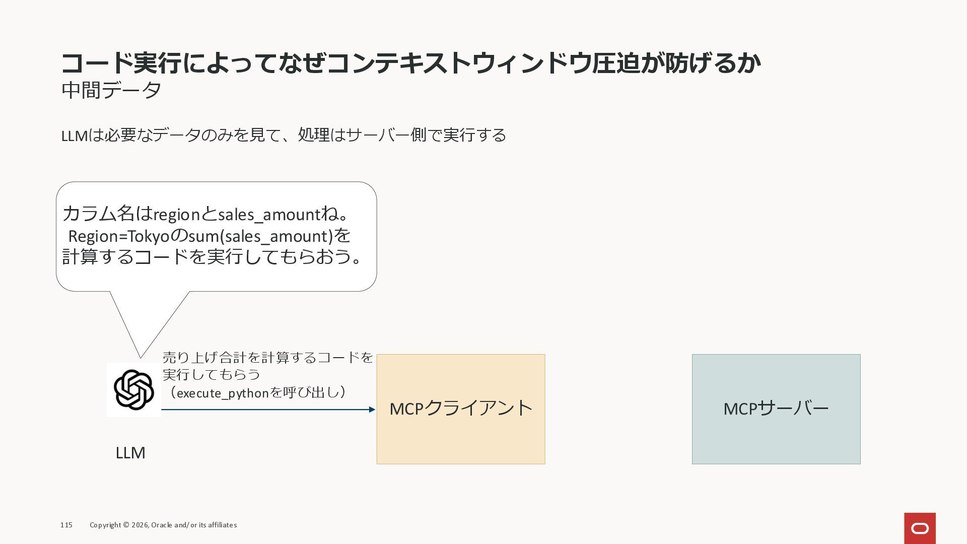 affiliates MCPクライアント MCPサーバー JSON-RPC 2.0 MCPの仕様 (メソッドなど) JSON-RPC 2.0 MCPの仕様 (メソッドなど) *JSON-RPC 2.0では、jsonrpc, id, method, paramsなどのフィールドが定義されているが、その中に何がくるのかまでは定 義されていない MCPは、その中(例えばmethodの中)にどういう名前が入るかなどを定義している *https://www.jsonrpc.org/specification