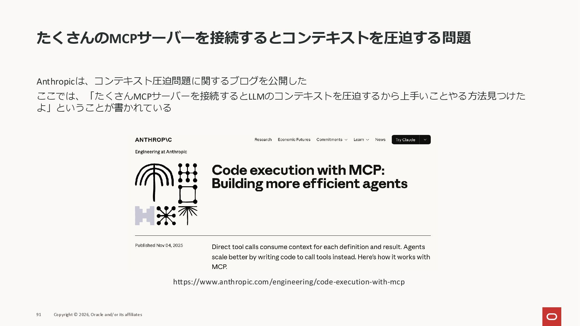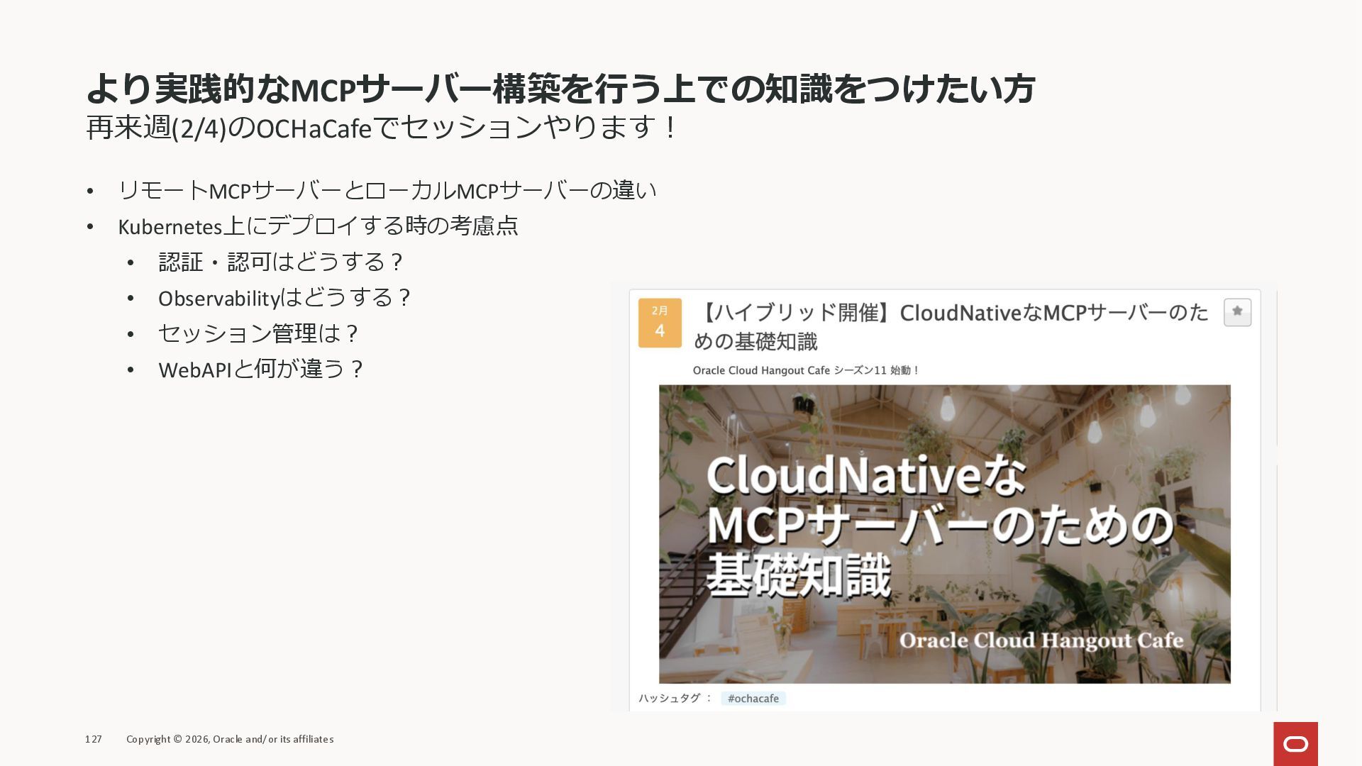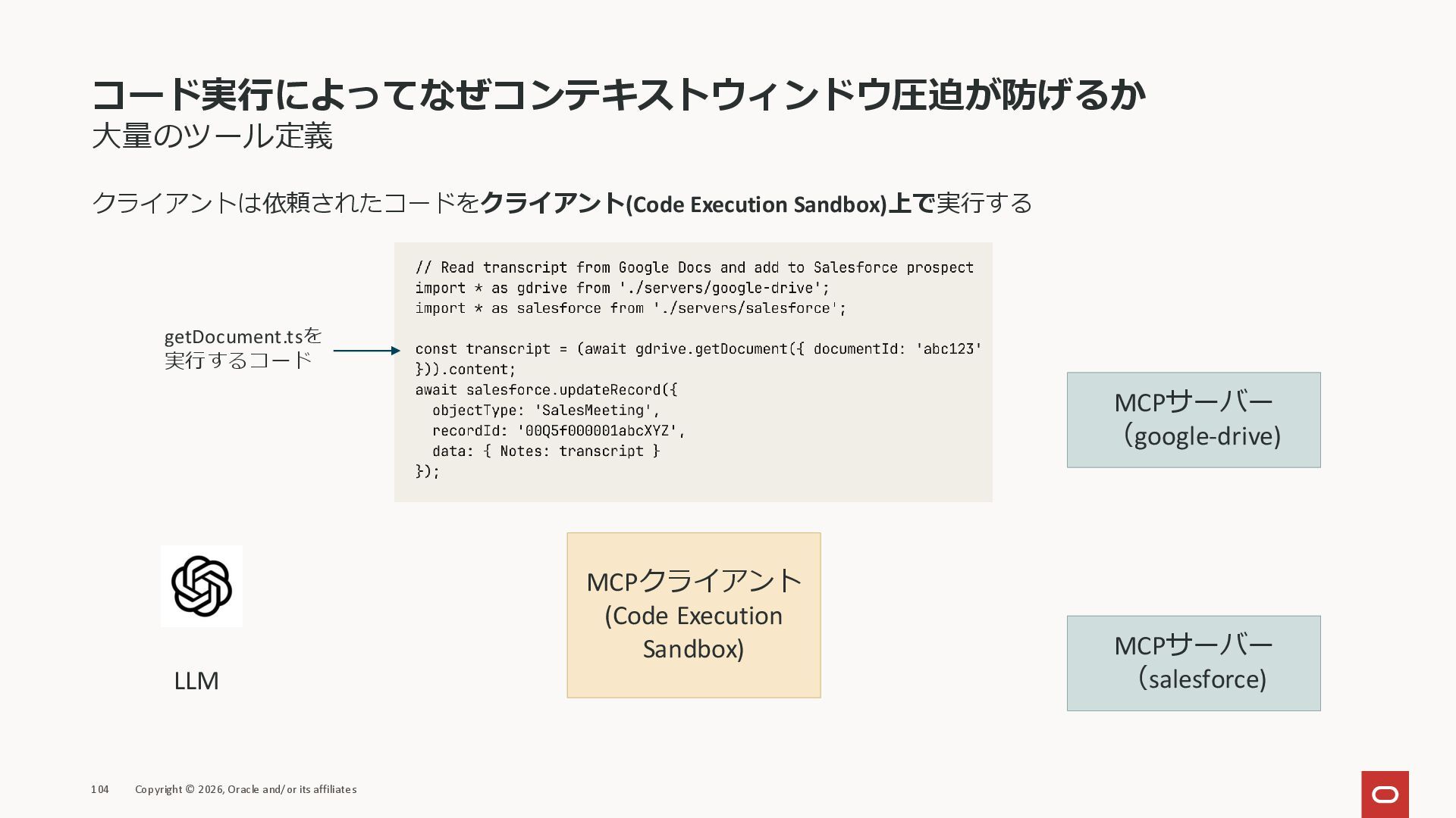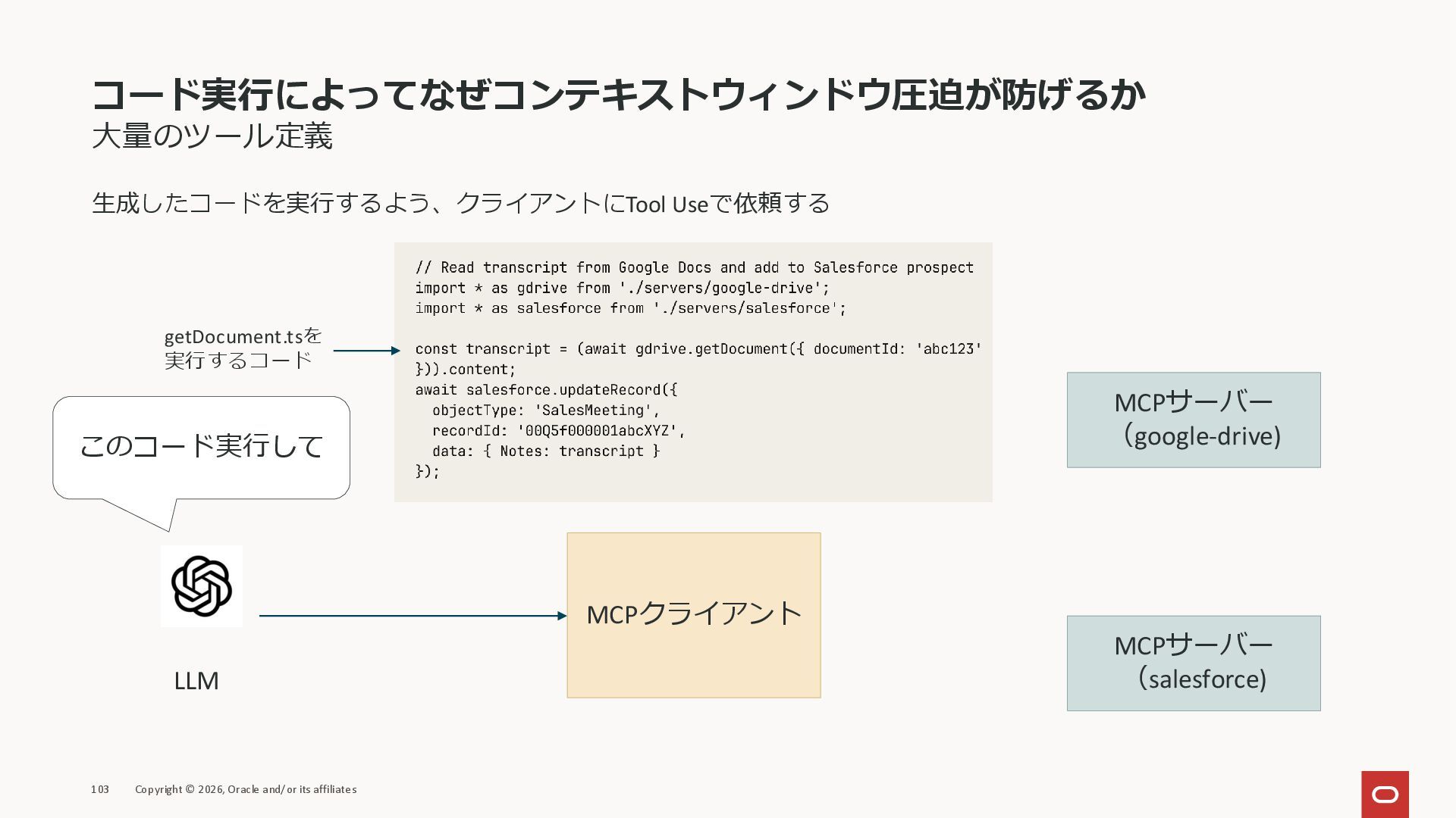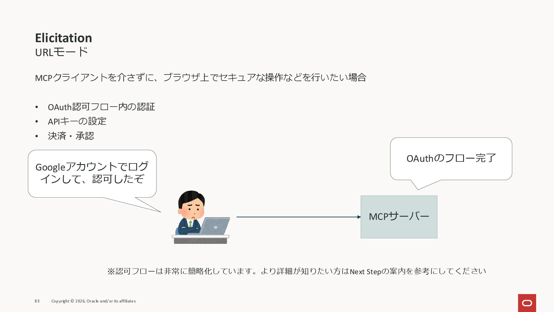 affiliates MCPクライアント MCPサーバー JSON-RPC 2.0 MCPの仕様 (メソッドなど) JSON-RPC 2.0 MCPの仕様 (メソッドなど) *JSON-RPC 2.0では、jsonrpc, id, method, paramsなどのフィールドが定義されているが、その中に何がくるのかまでは定 義されていない MCPは、その中(例えばmethodの中)にどういう名前が入るかなどを定義している *https://www.jsonrpc.org/specification