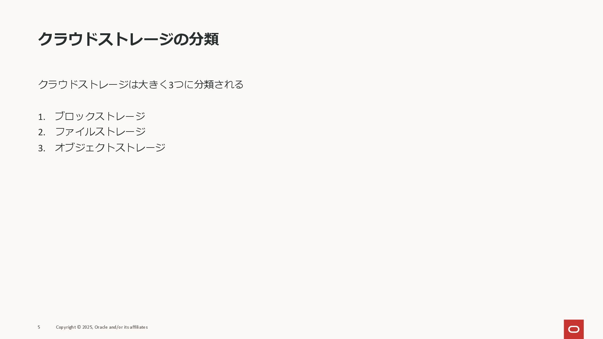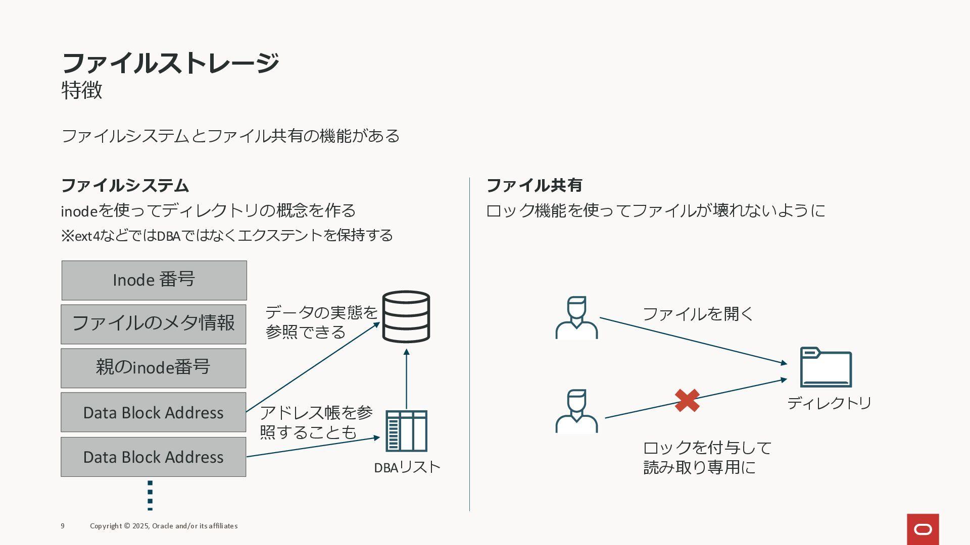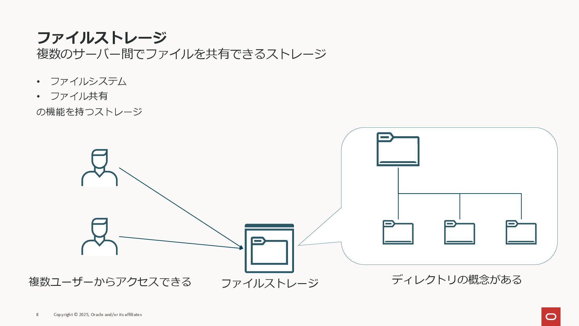 2025, Oracle and/or its affiliates ディレクトリの概念がある 複数ユーザーからアクセスできる ファイルストレージ