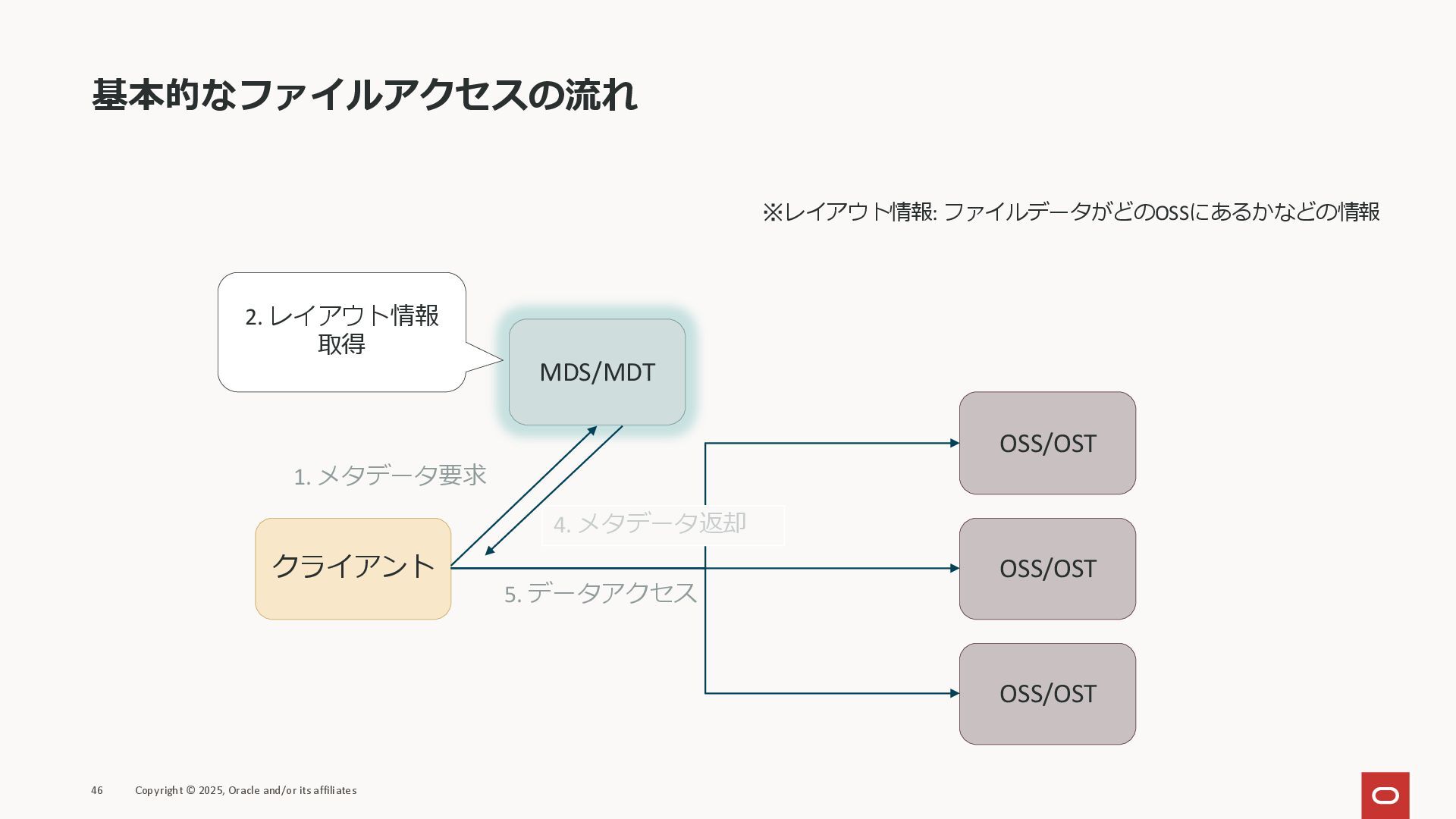 基本的なファイルアクセスの流れ 45 Copyright © 2025, Oracle and/or its affiliates クライアント