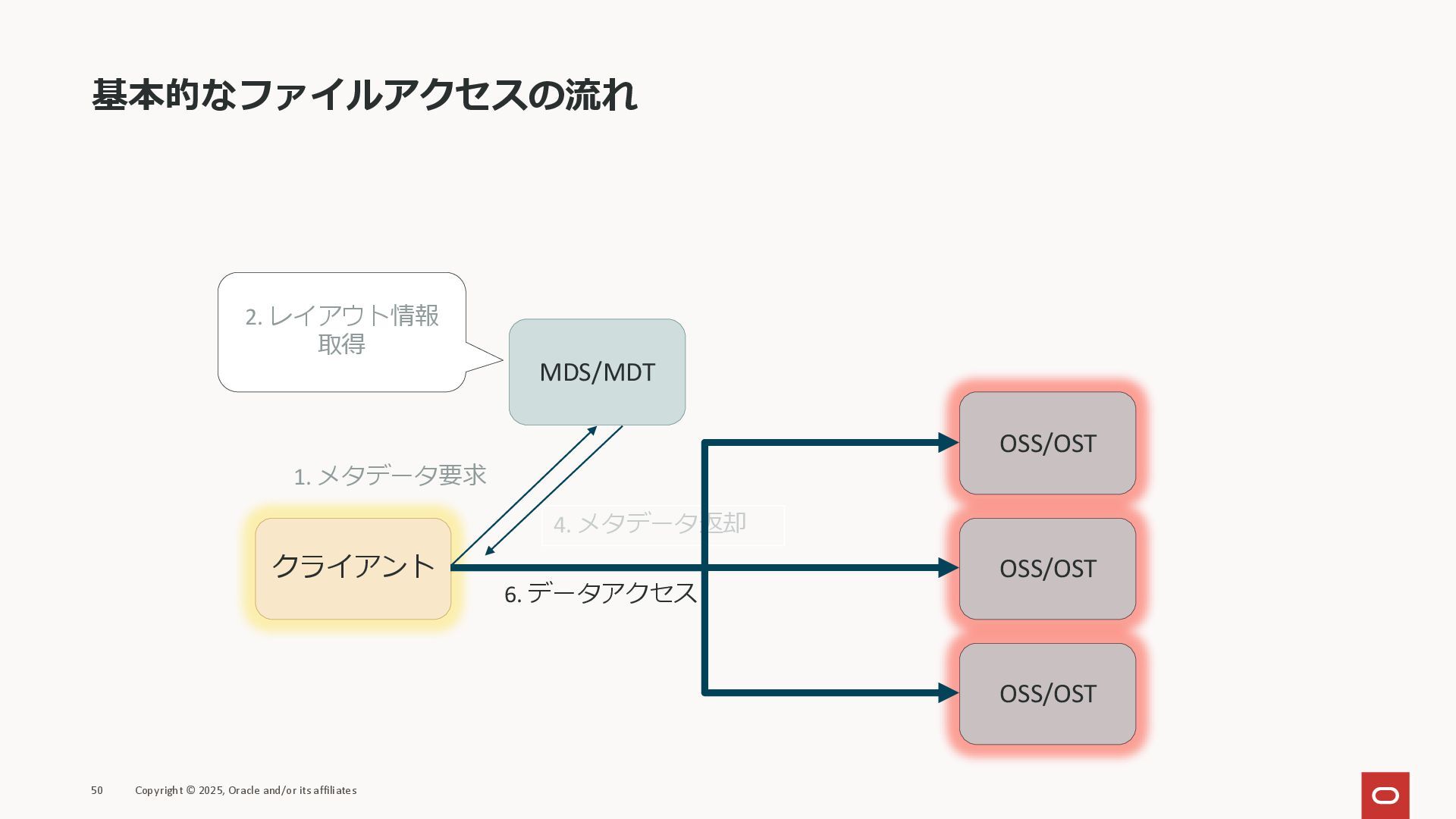 基本的なファイルアクセスの流れ 49 Copyright © 2025, Oracle and/or its affiliates クライアント