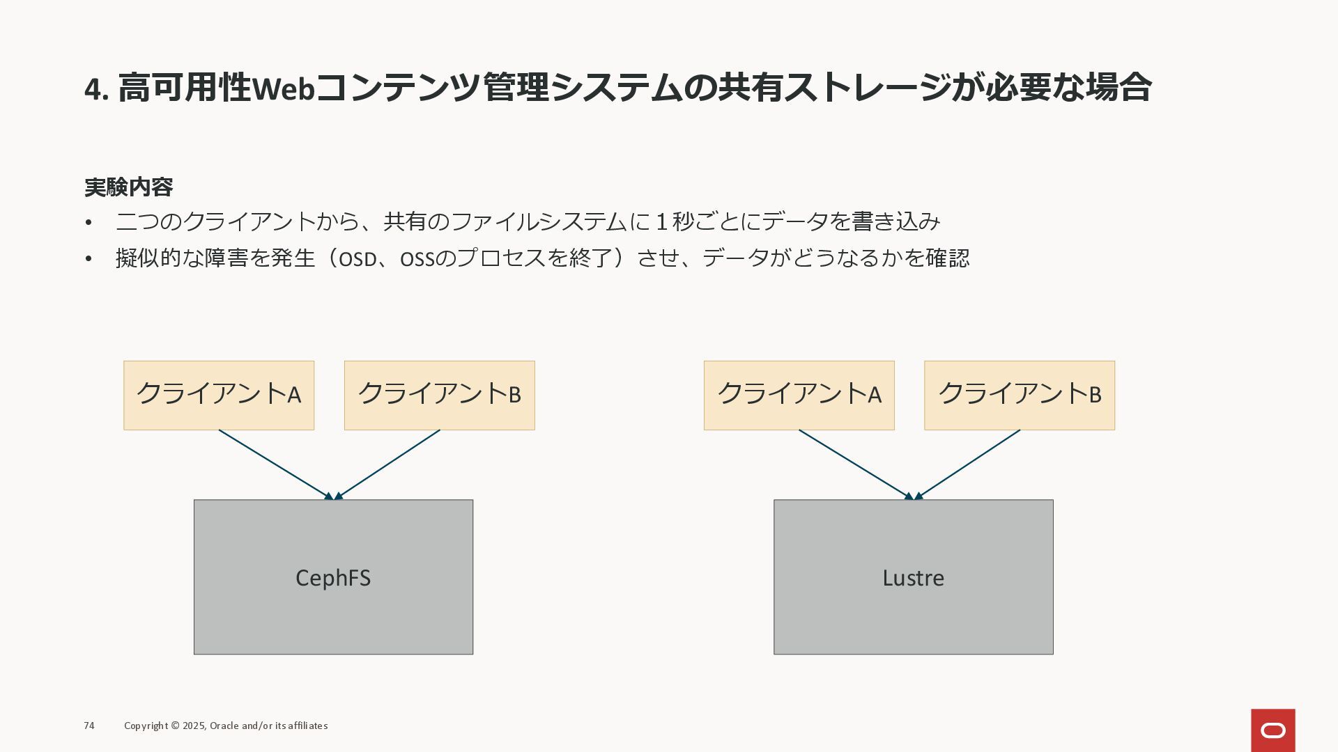2025, Oracle and/or its affiliates クライアントA クライアントB CephFS クライアントA クライアントB Lustre