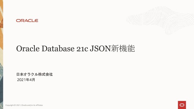 Oracle Database 21c JSON新機能 日本オラクル株式会社 2021年4月 Copyright © 2021, Oracle