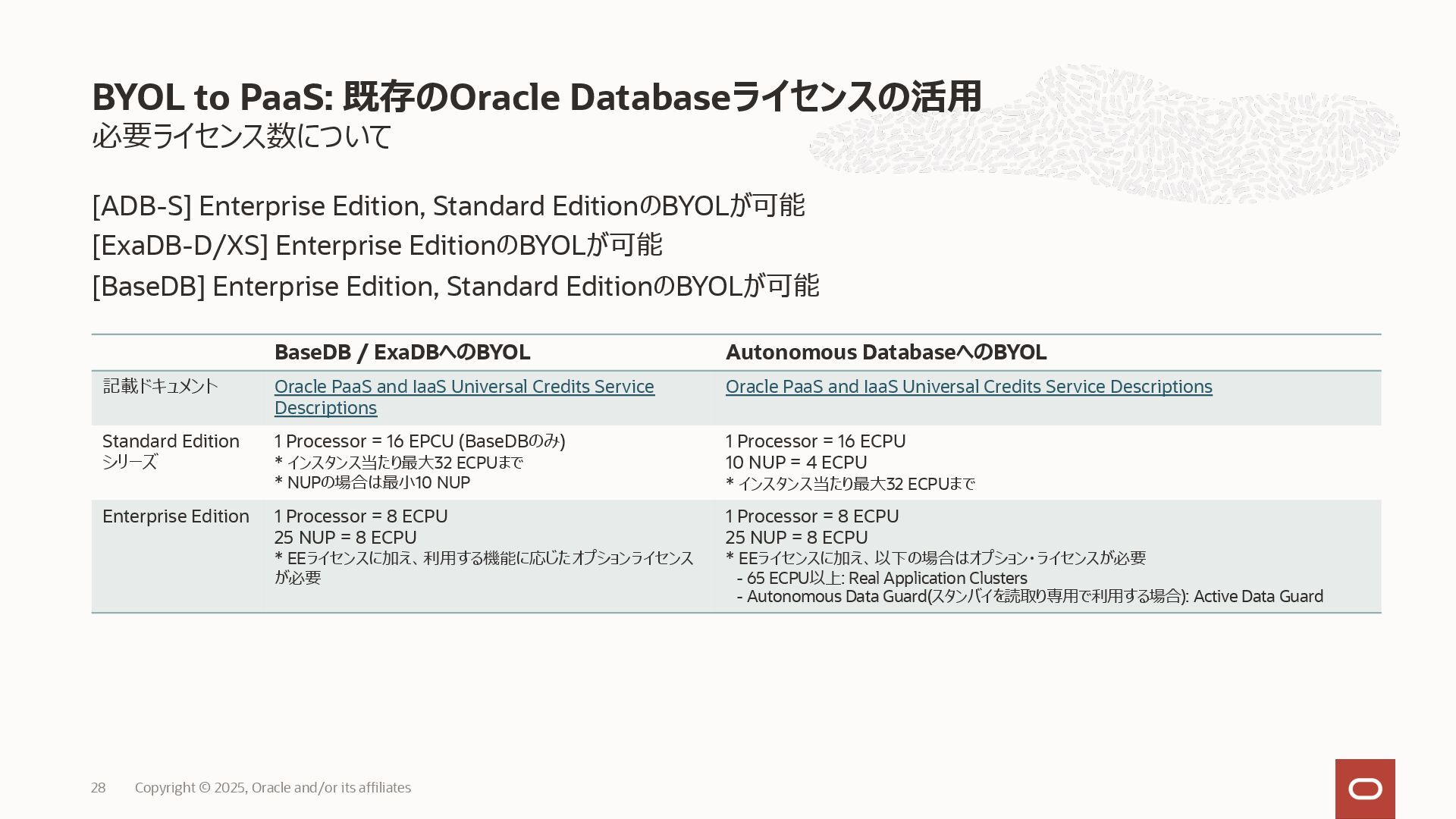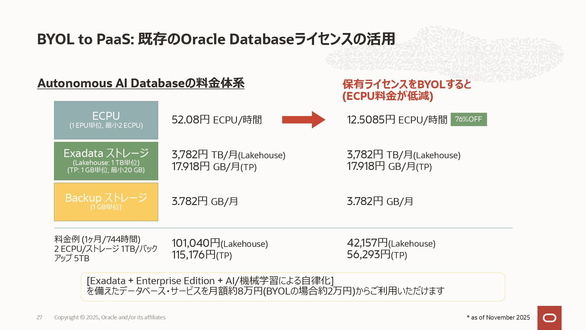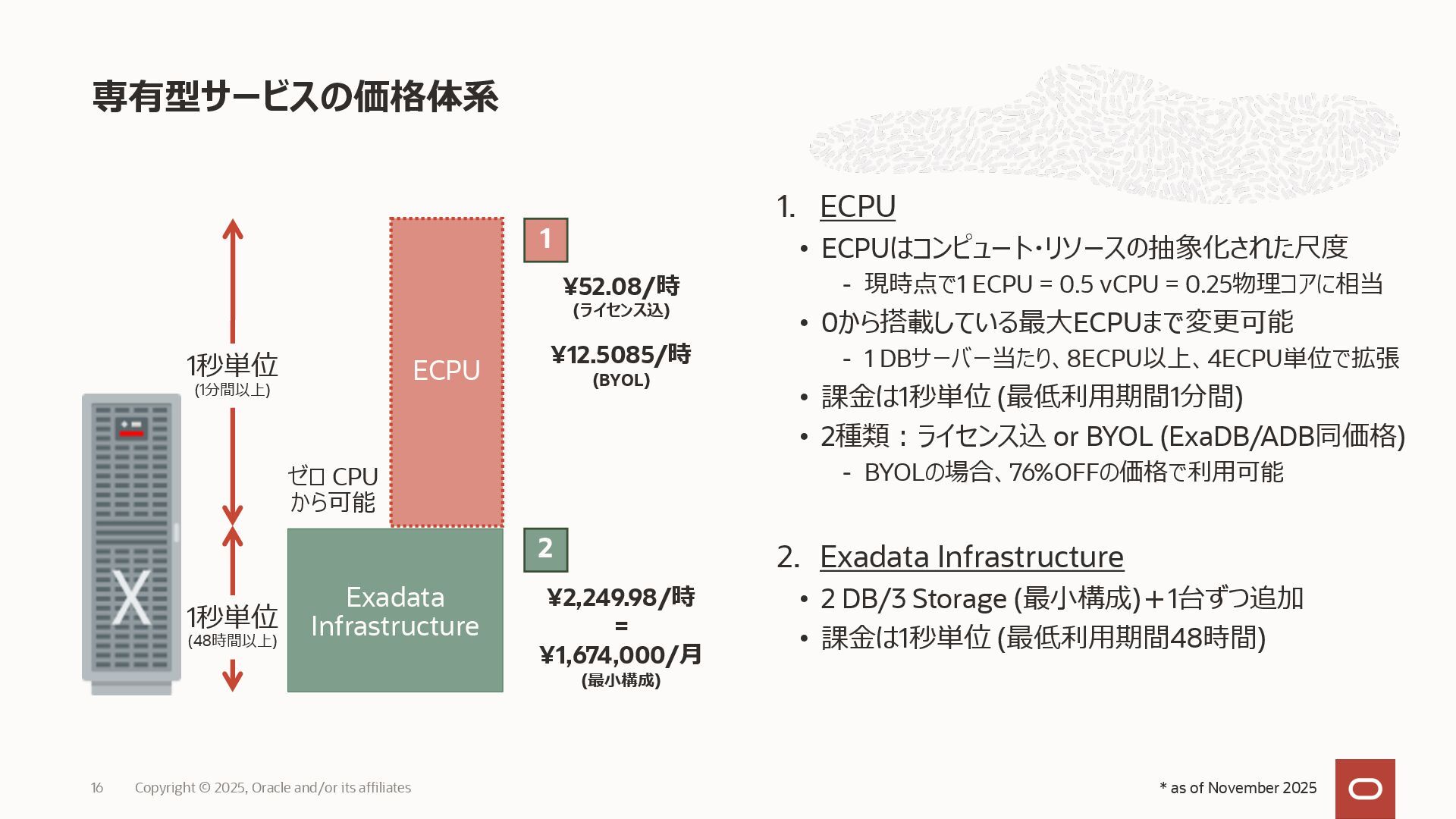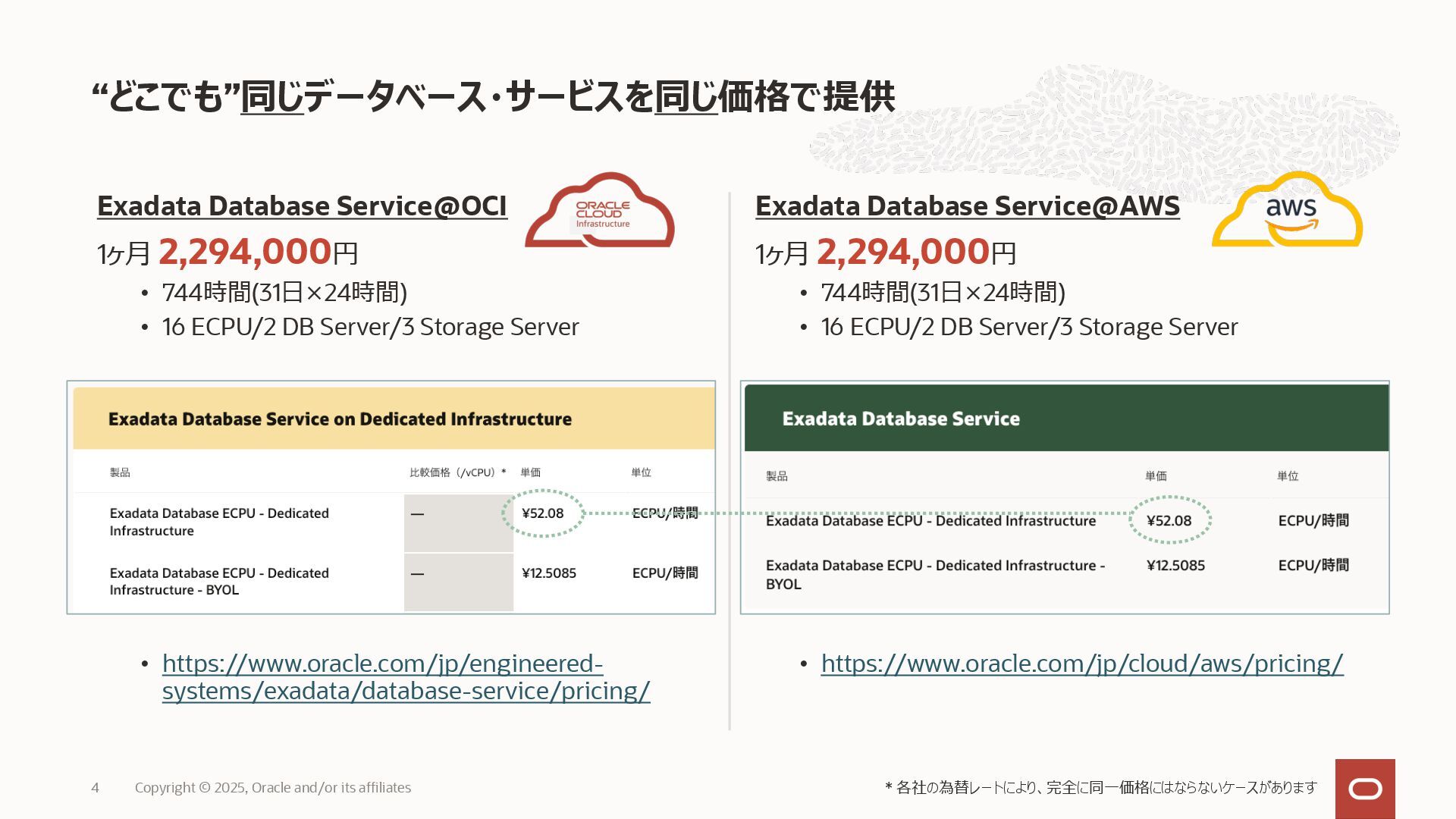 クラウドをオンプレミスで実⾏ Same Database. Same Features. Same Pricing. Exadata Cloud@Customer OCI Dedicated Region OCIフルサービスを お客様データセンターで提供 OCI Exadataサービスを お客様データセンターで提供