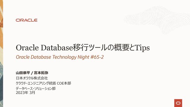 ビックエンディアン からの変換 スキーマ構成 の変更 non-CDBか らCDBへの 移行 停止時間 補足 Data Pump DB/表領域/ スキーマ/表 11.2.0.4 SE~ 〇 〇 〇 〇 大~中 RMAN Backup/Restore DB 11.2.0.4 SE~ 〇 〇(一部制限あり) × ×(*3) 中~小 RMAN Duplicate DB 11.2.0.4 SE~ 〇 〇(一部制限あり) × × 小 Transportable Tablespaces 表領域 11.2.0.4 EE 〇 〇(一部制限あり) × 〇 中~小 移行先DBはEE以上が必要 Full Transportable export/import DB 11.2.0.4 EE 〇 〇(一部制限あり) × 〇 中~小 移行先DBはEE以上が必要 移行先DBバージョンは12.1.0.1以降 RMAN Transportable Tablespaces DB/表領域 11.2.0.4 EE 〇 〇(一部制限あり) × 〇 中~小 移行先DBはEE以上が必要 PDB Unplug/Plug PDB 12.1.0.2 SE~ 〇 × × × 中~小 PDB Clone PDB 12.1.0.2 SE~ 〇 × × × 小 Non-CDB Clone DB 12.1.0.2 SE~ × × × 〇 小 Data Guard DB 11.2.0.4 EE × × × × 極小 移行先DBはEE以上が必要 GoldenGate DB/表領域/ スキーマ/表 11.2.0.4(*2) SE~+ GoldenGate 〇 〇 〇 〇 極小 ダウンタイムを極小化したい場合に 他の移行方式と併用しての利用を推奨 Zero Downtime Migration(ZDM) DB 11.2.0.4 SE~ 〇 〇(AIX,Solarisのみ) 〇 〇 極小 Oracle Cloud Infrastructureへの移行 移行元ライセンスによって 選択可能な移行方式が異なる Database Migration Service DB 11.2.0.4 SE~ 〇 × × 〇 極小 Oracle Cloud Infrastructureへの移行 ZDMの論理移行をフルマネージドサー ビスで提供 アップグレードを伴う 移⾏は〇から選択 (*1)サポートされている最低バージョン。これよりも古いバージョンでのサポート可否は都度確認が必要。 (*2)利⽤製品/バージョン/OS等、ソースDBのサポート可否は都度確認が必要。 (*3)non-CDBが18c以降である場合はDBMS_PDB.EXPORTRMANBACKUPを活⽤することで実現可能 https://oracle-base.com/articles/18c/multitenant-usable-backups-of-non-cdbs-and-relocated-pdbs-18c Copyright © 2023, Oracle and/or its affiliates 4
