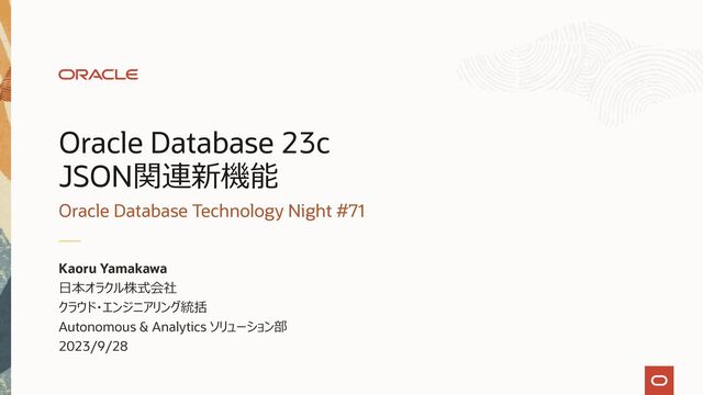 TechNight#71 - Oracle Database 23c 新機能#1 JSON関連新機能