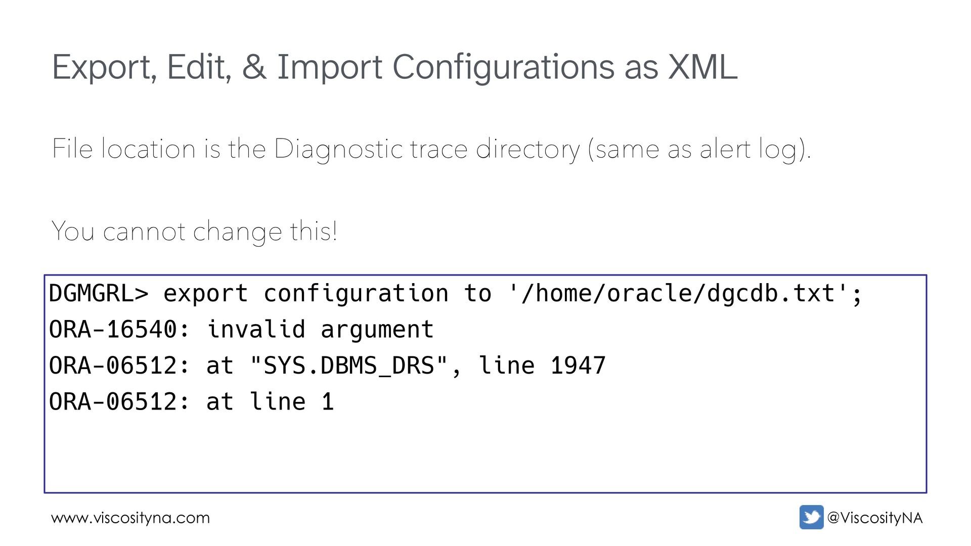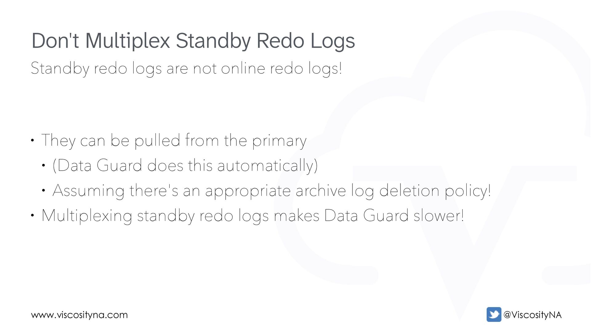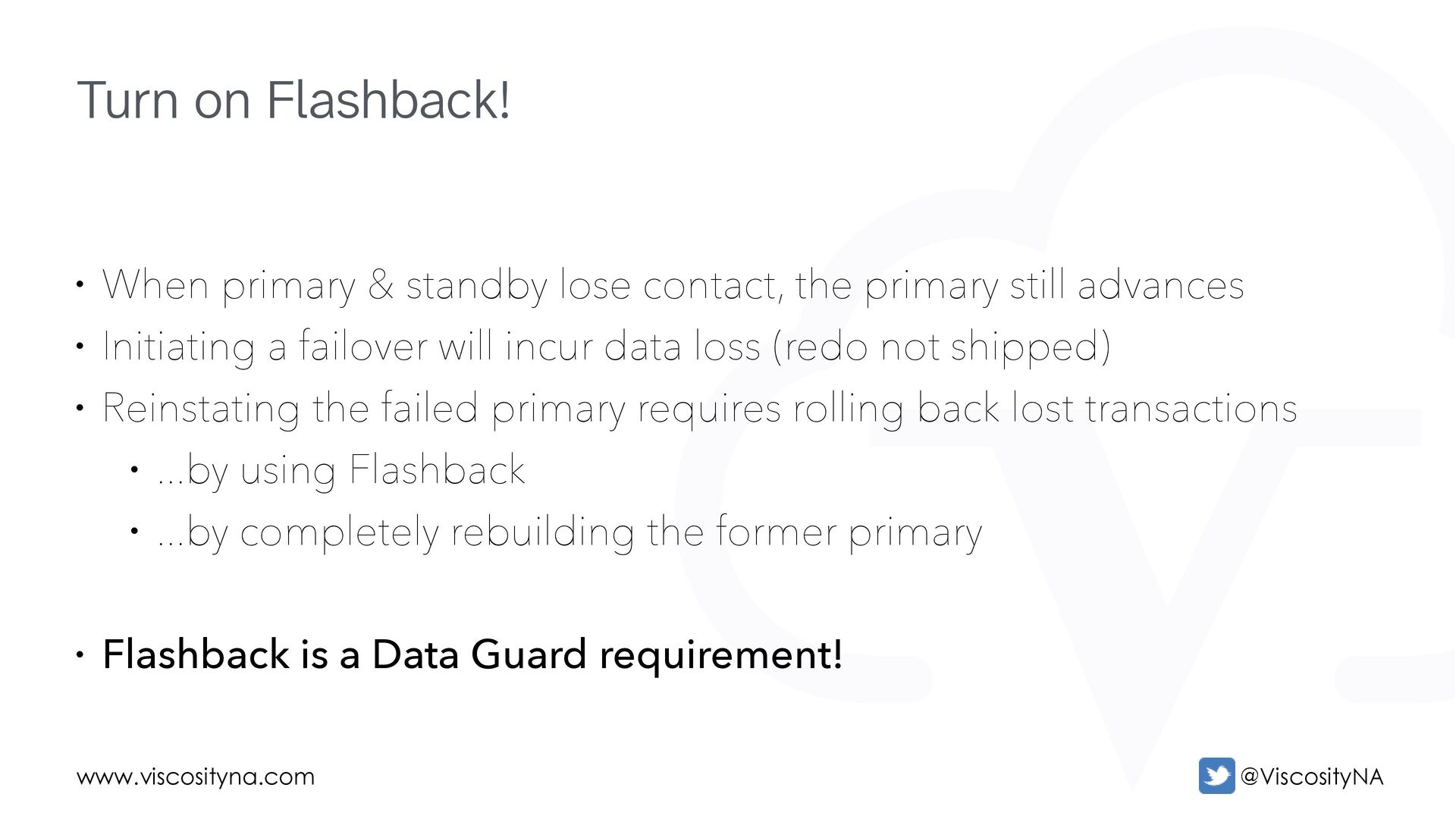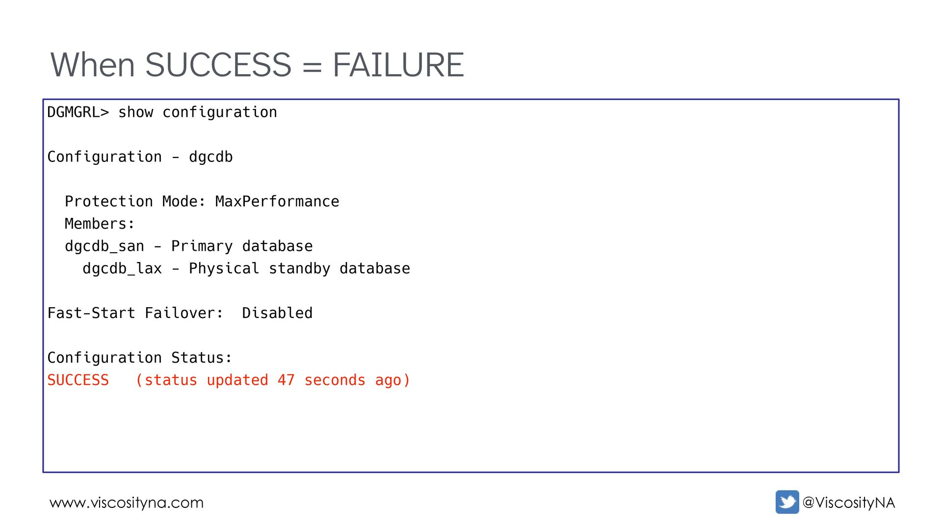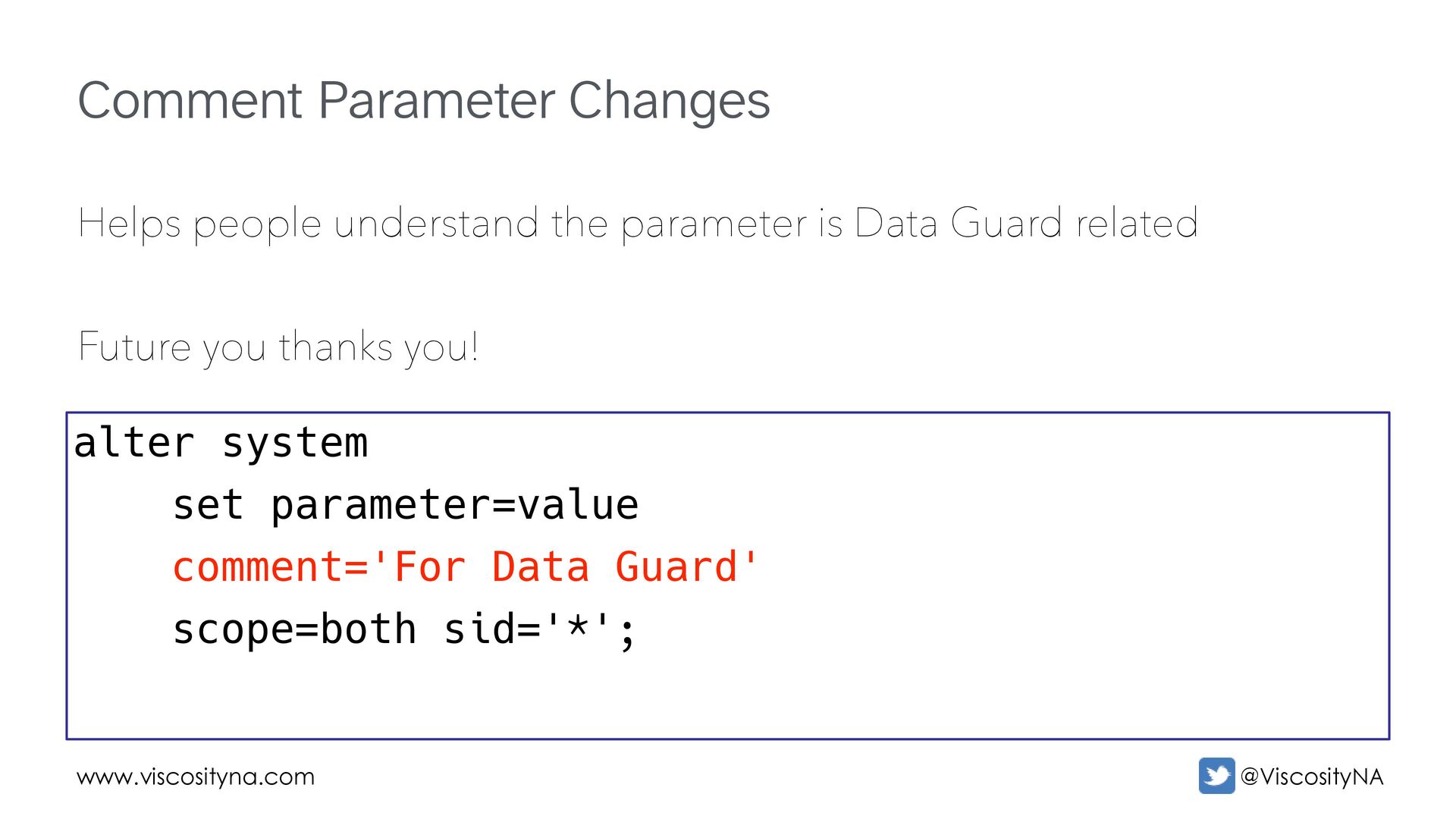 start databases • Used for switchover, convert, and reinstate operations • This connection is exclusively for the Data Guard Broker! • Oracle sets StaticConnectIdentifier using local_listener • ...appends _DGMGRL to the service • Oracle automatically manages this value unless users change: • The Broker's StaticConnectIdentifier • The local_listener parameter StaticConnectIdentifier