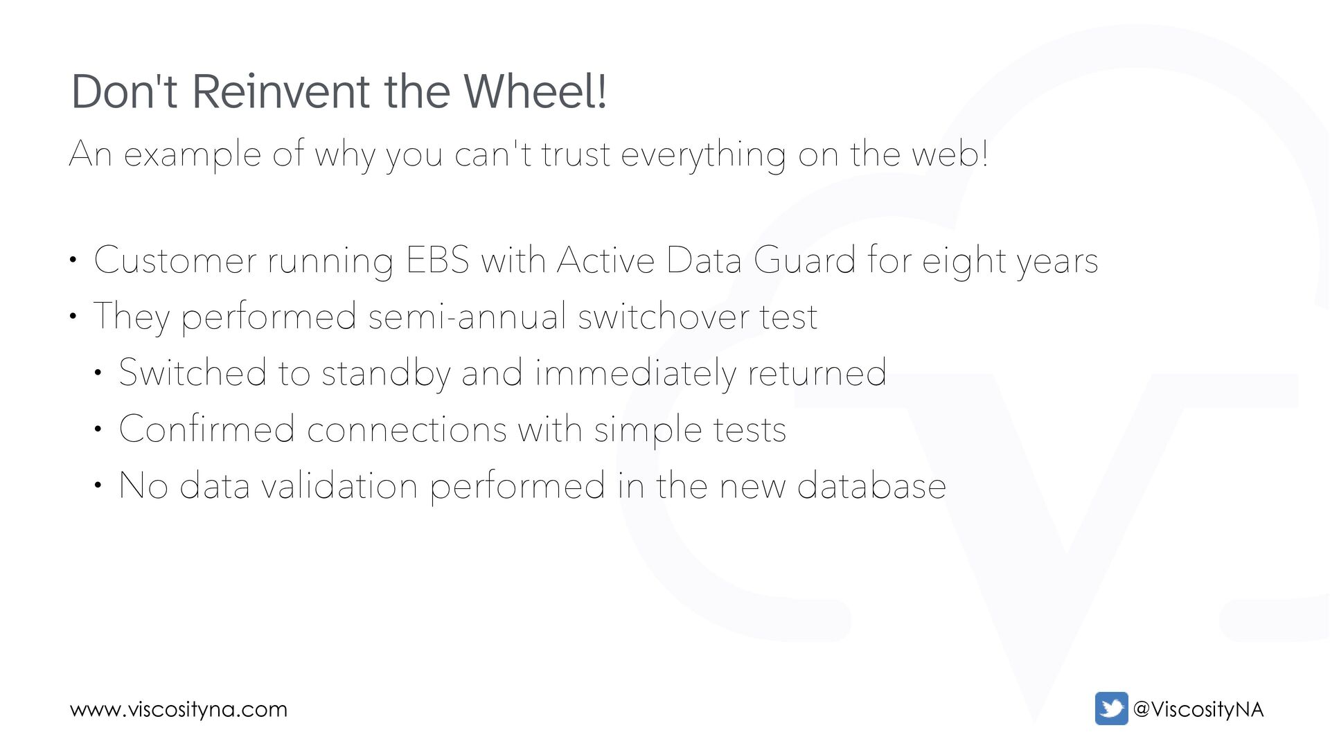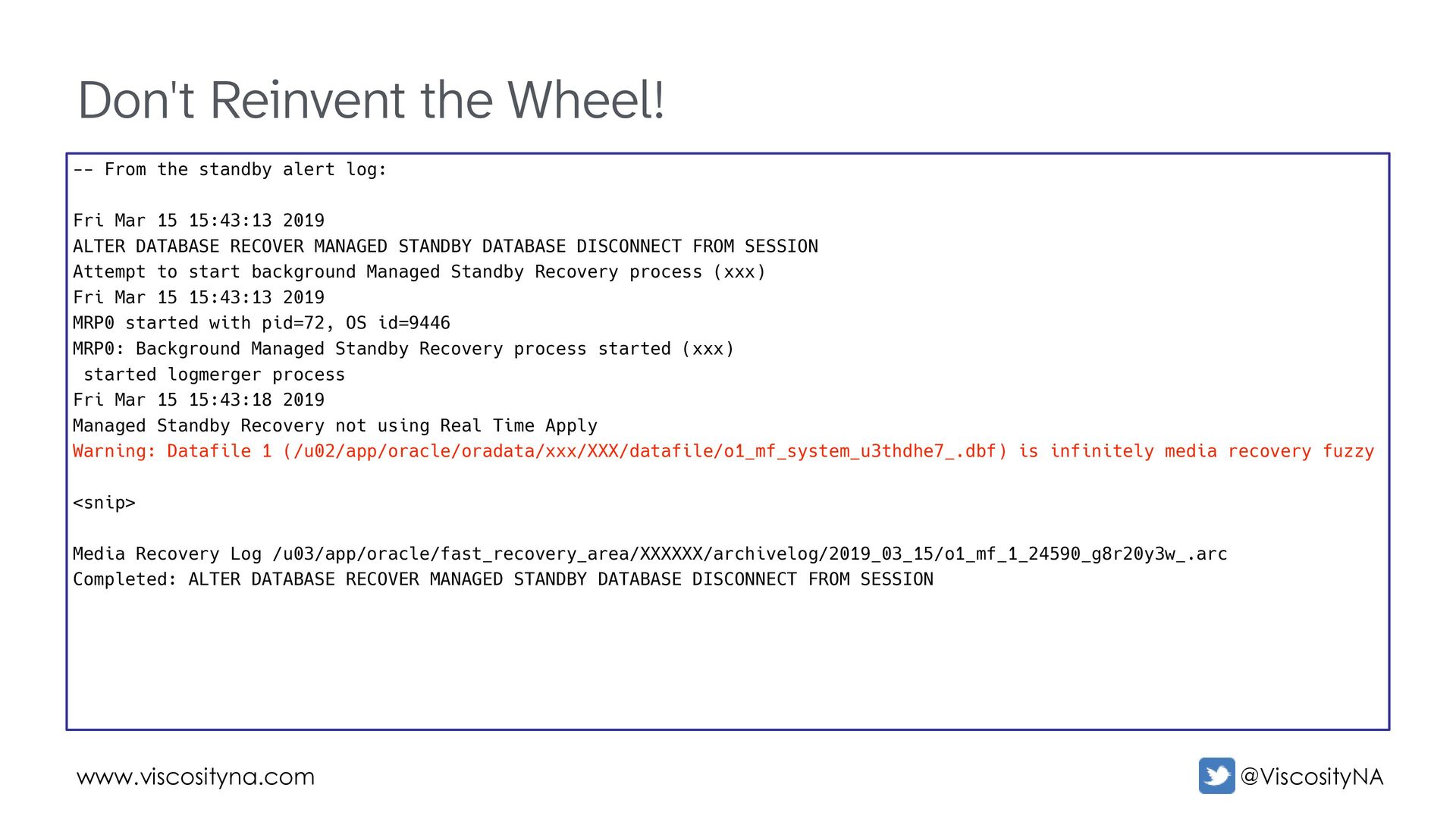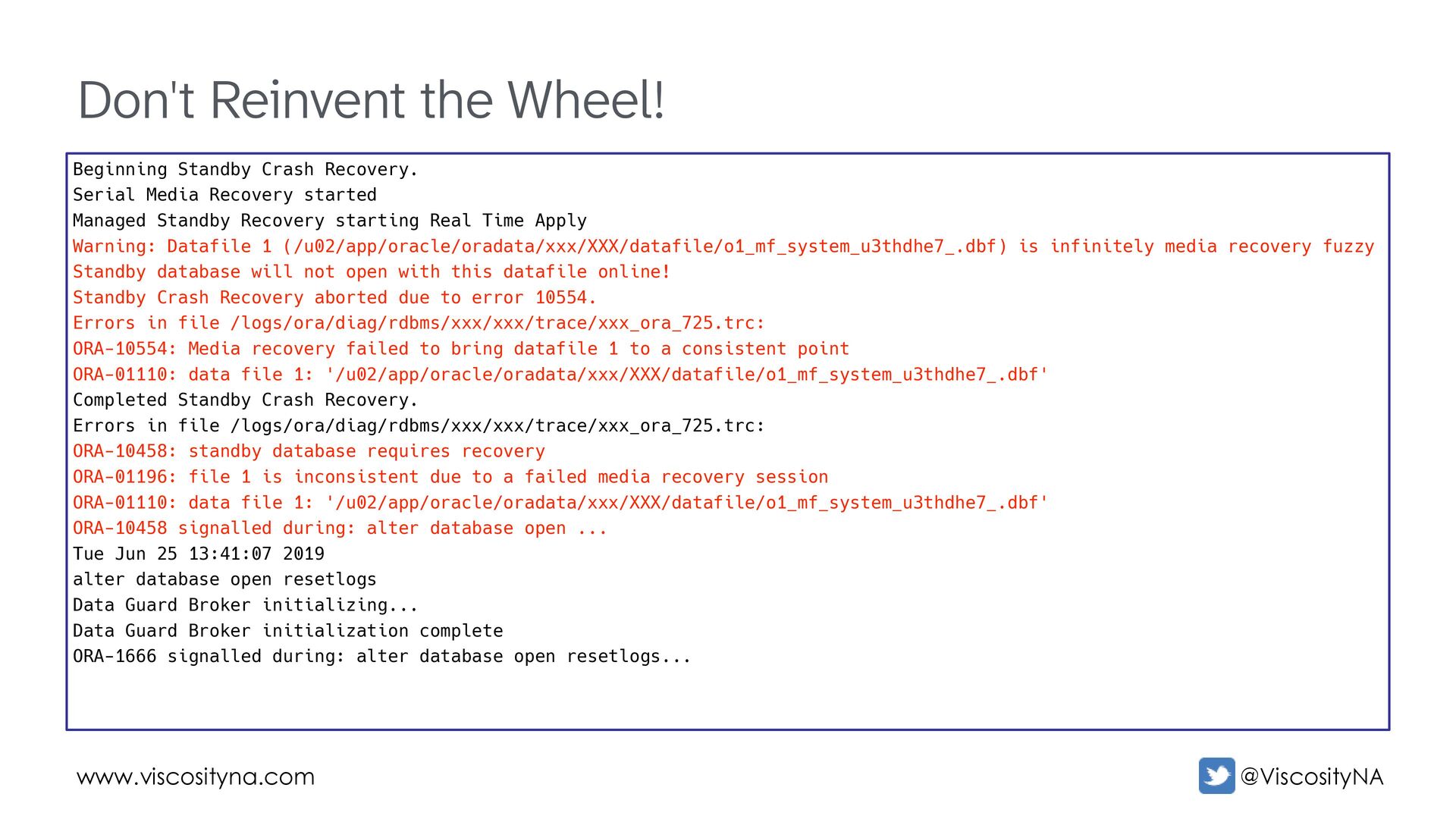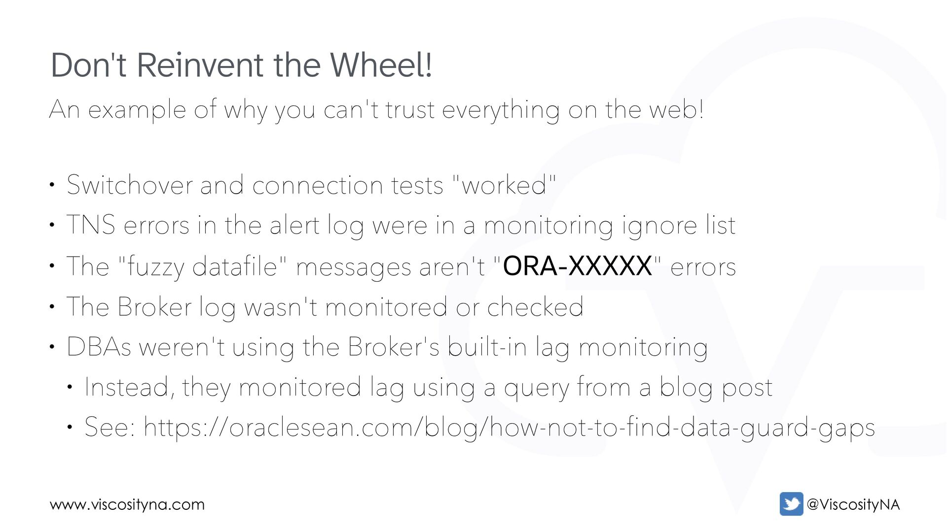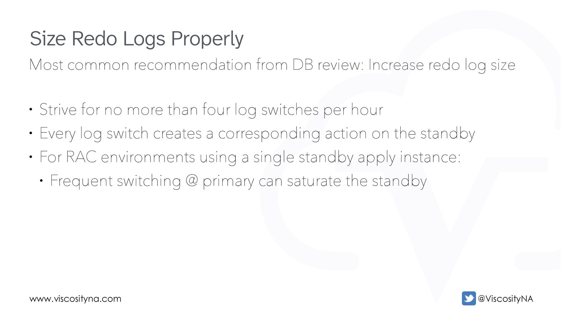start databases • Used for switchover, convert, and reinstate operations • This connection is exclusively for the Data Guard Broker! • Oracle sets StaticConnectIdentifier using local_listener • ...appends _DGMGRL to the service • Oracle automatically manages this value unless users change: • The Broker's StaticConnectIdentifier • The local_listener parameter StaticConnectIdentifier
