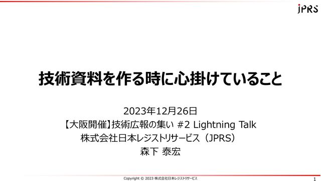 2023年12月26日に大阪で開催された「技術広報の集い #2」の発表資料です。 技術資料を作成する際に心掛けている5項目の基本ポイントについて、例を挙げて紹介・解説しています。