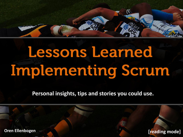 with it? – Openness, short feedback loops, team building, fun, focus, celebrate success. • Can this process fit our people? – “We want to work with people who […] in an environment where […]” – Write it down, use it as a goal. Adjust process to people, not the other way around. • Will it scale? – People should believe that process value > cost. – If people afraid it won’t fit as the company grows, they will be reluctant to support it. – Everyone should be able to explain the motivation behind it (not only the rituals) Stop worrying about: • DSM time, Scrum Master, Sprint length etc.