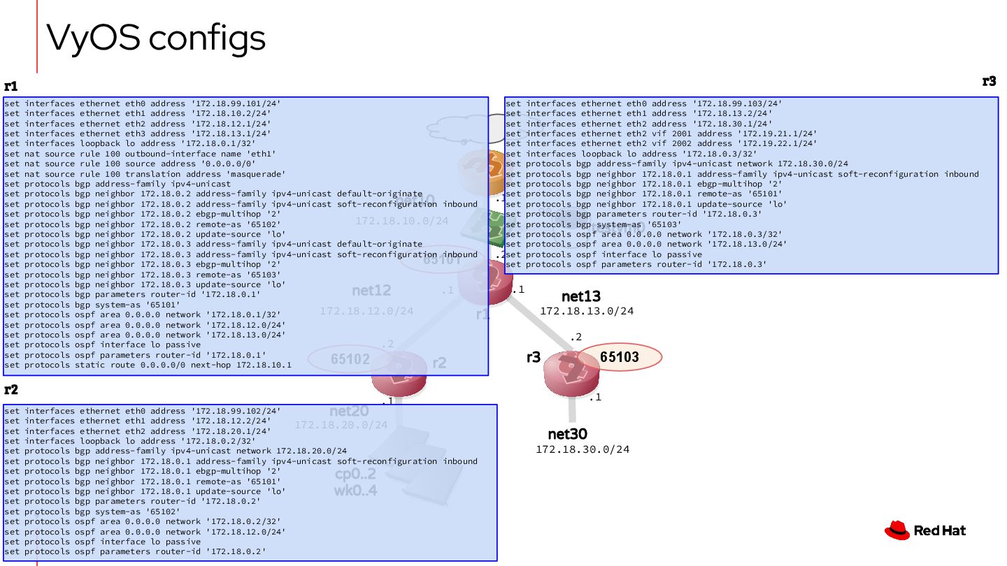 6. VyOS configs r1 net10 net12 net13 r2 r3 net20 172.18.10.0/24