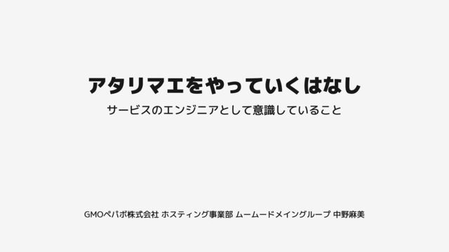 GMOペパボ株式会社 ホスティング事業部 ムームードメイングループ 中野麻美 アタリマエをやっていくはなし サービスのエンジニアとして意識していること