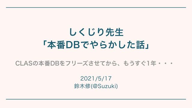 本番DBでやらかしたあと、1年後にLTで発表したネタです。