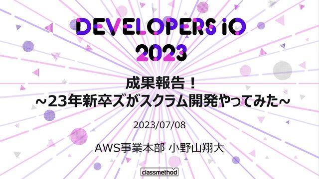 成果報告︕ ~23年新卒ズがスクラム開発やってみた~ AWS事業本部 ⼩野⼭翔⼤ 2023/07/08