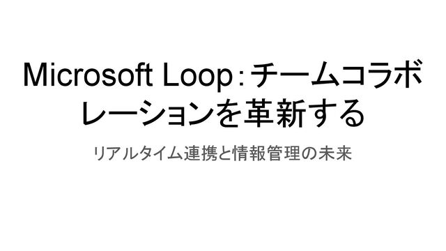 Microsoft Loop:チームコラボ レーションを革新する リアルタイム連携と情報管理の未来