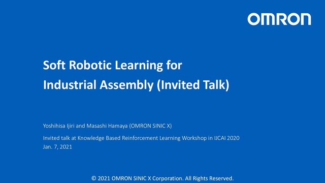 reward function is difficult. • Exploit successful and failed demonstrations • Develop a teaching device that mimics the robot’s gripper Learning Soft Robotic Assembly Strategies from Successful and Failed Demonstrations [Hamaya et al., IROS 2020] Learning from knowledge of humans Teaching device Learning given demonstrations