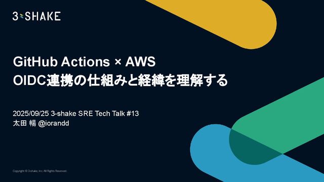 GitHub Actions × AWS OIDC連携の仕組みと経緯を理解する 2025/09/25 3-shake SRE Tech Talk