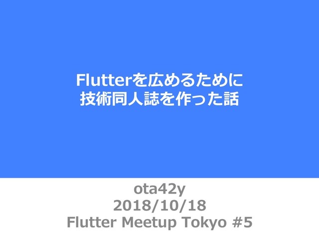 ota42y 2018/10/18 Flutter Meetup Tokyo #5 Flutterを広めるために 技術同⼈誌を作った話