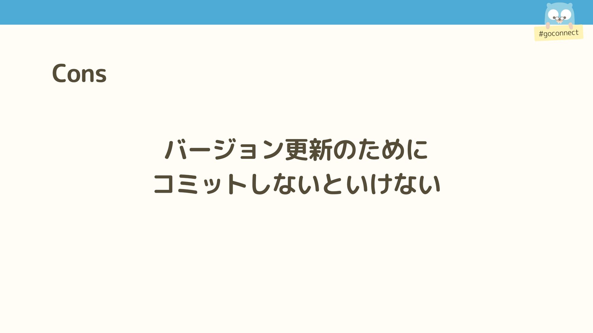 バージョン更新のために コミットしないといけない #goconnect Cons