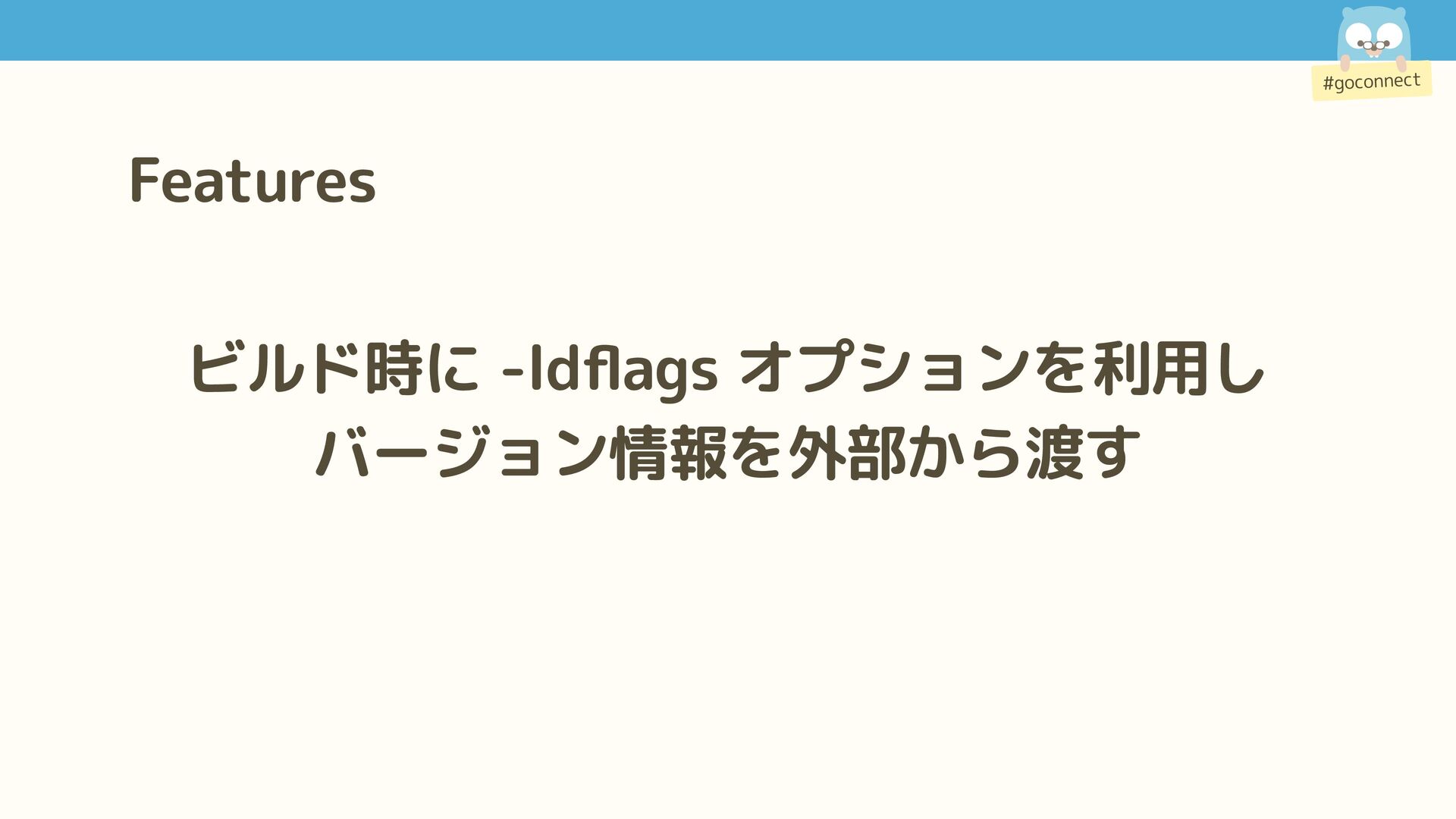 ビルド時に -ldflags オプションを利用し バージョン情報を外部から渡す #goconnect Features