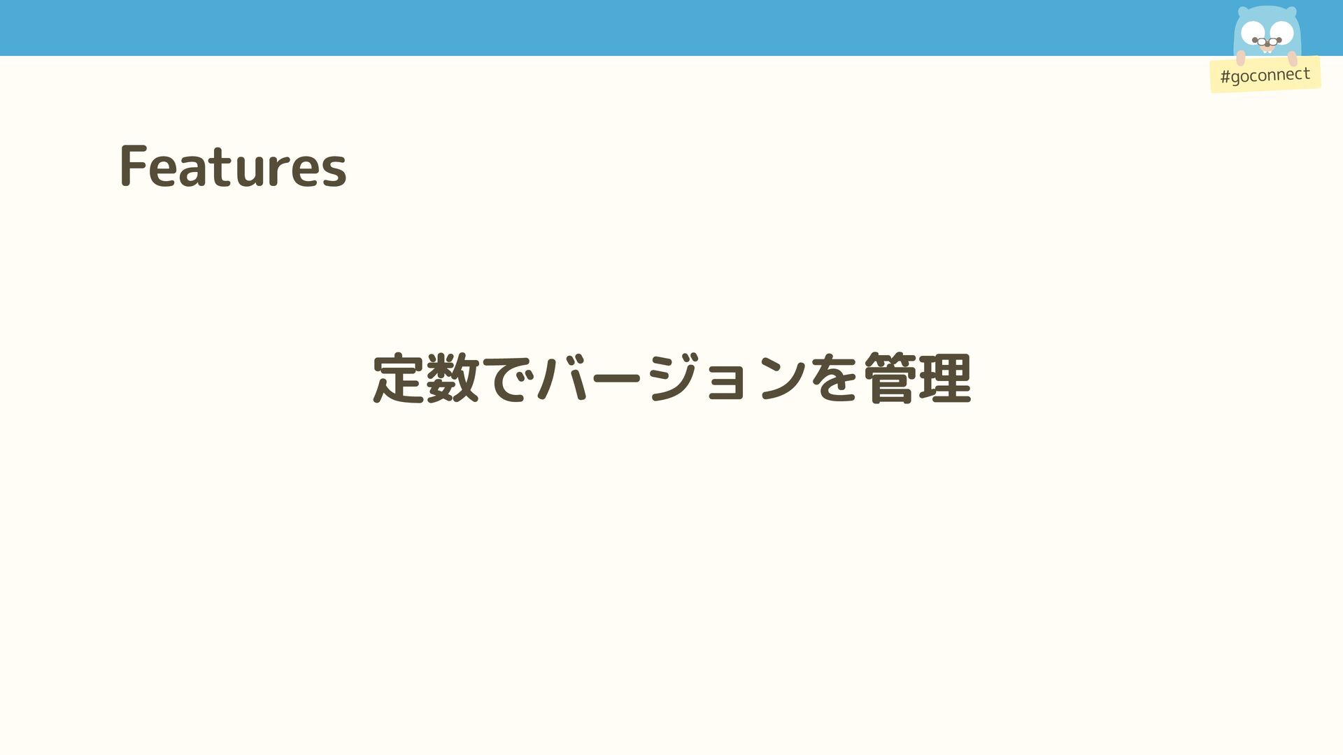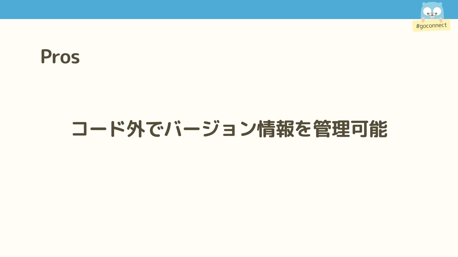 コード外でバージョン情報を管理可能 #goconnect Pros