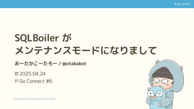 #goconnect The Go gopher was designed by Renée French. SQLBoiler