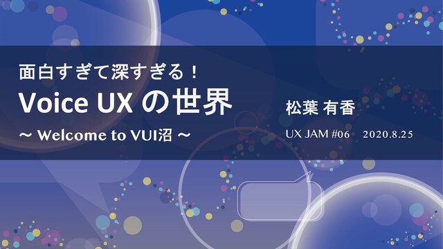 面白すぎて深すぎる! Voice UX の世界 UX JAM #06 2020.8.25 〜 Welcome