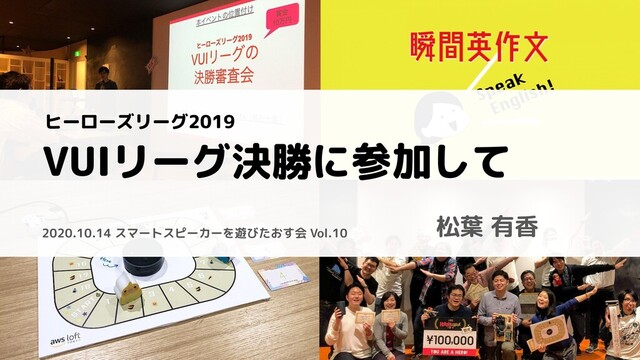 1 VUIリーグ決勝に参加して 松葉 有香 2020.10.14 スマートスピーカーを遊びたおす会 Vol.10 ヒーローズリーグ2019