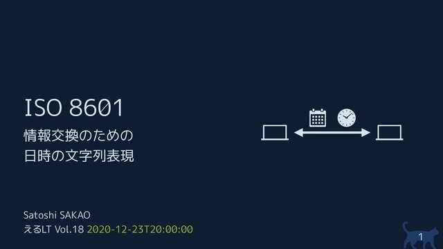 ISO 8601 Satoshi SAKAO えるLT Vol.18 2020-12-23T20:00:00 1 情報交換のための 日時の文字列表現