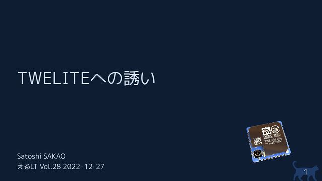 TWELITEへの誘い Satoshi SAKAO えるLT Vol.28 2022-12-27 1