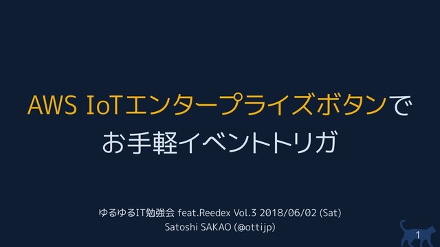 AWS IoTエンタープライズボタンで お手軽イベントトリガ ゆるゆるIT勉強会 feat.Reedex Vol.3 2018/06/02 (Sat) Satoshi SAKAO