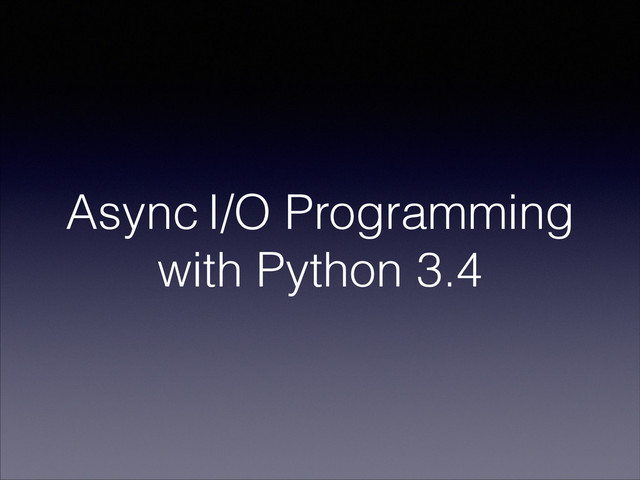 2013 • Part of standard library since Python 3.4 • You can install from PyPi asyncio for Python 3.3 • Writing single-threaded concurrent code using coroutines, multiplexing I/O access over sockets and other resources