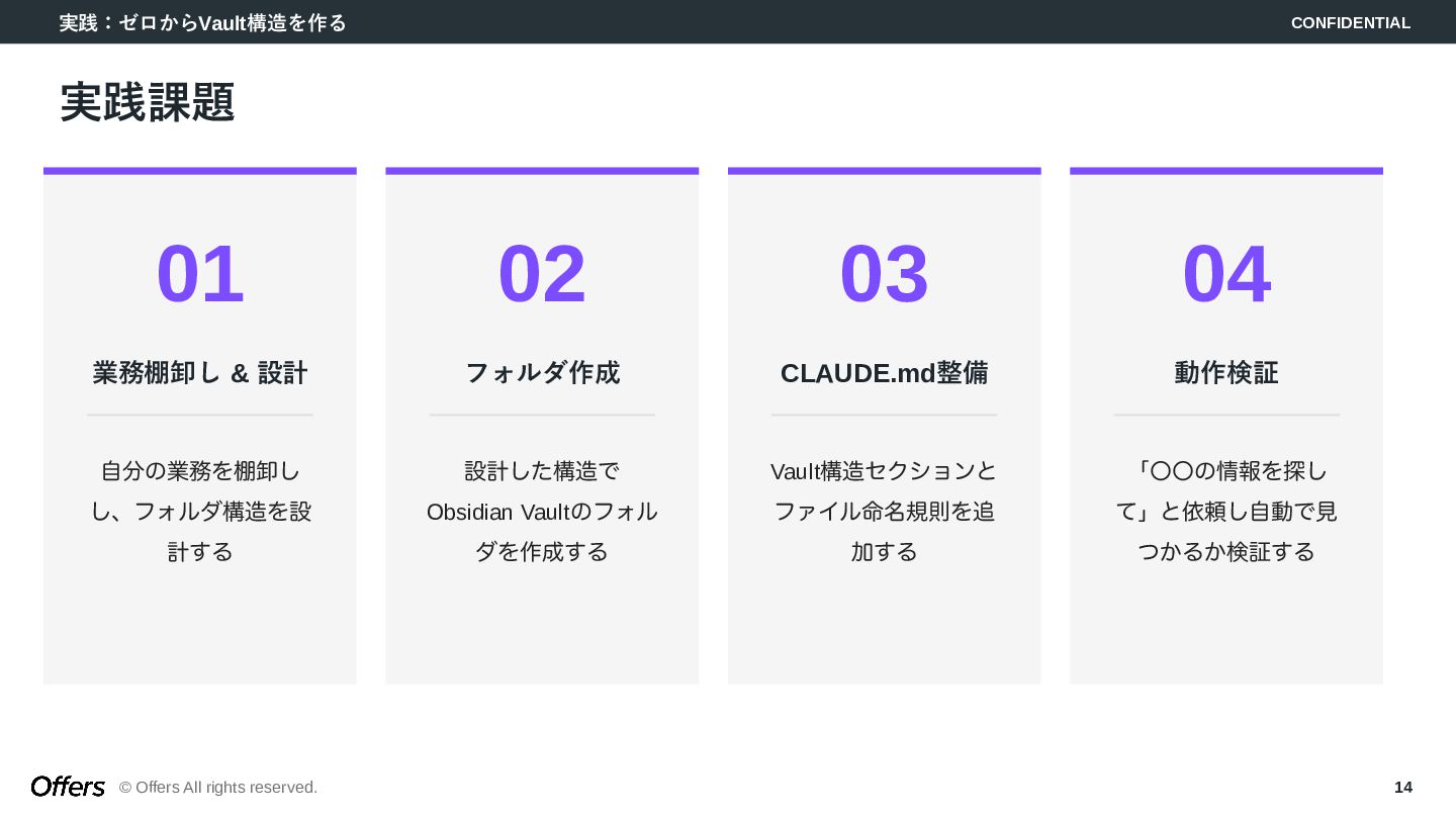 14. 実践:ゼロからVault構造を作る CONFIDENTIAL © Offers All rights reserved. 14 実践課題 01